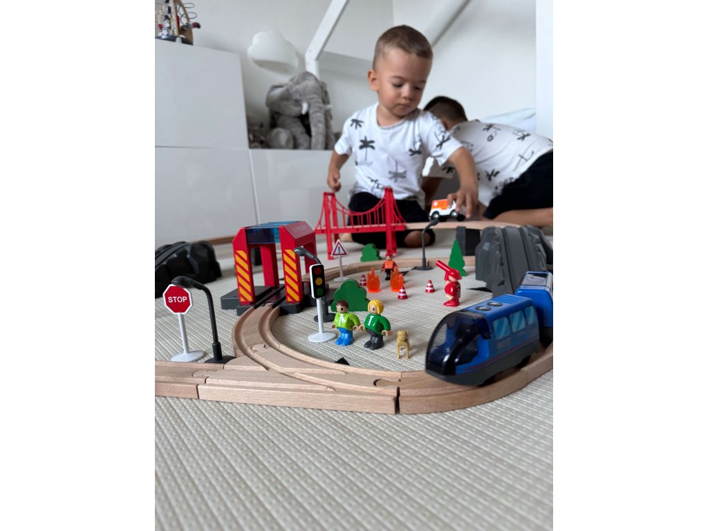 Éljen át egy akciódús kalandot a Wooden Train - Firefighters segítségével, amely ideális 3 éves és idősebb gyermekek számára. Ez a készlet 70 darabot tartalmaz, beleértve a vonatokat, vágányokat, tűzoltóállomást, hidat, alagutat és egyéb kiegészítőket. A játék támogatja a kreatív játékot, a finommotorikát és a szem-kéz koordinációt. A biztonságos és környezetbarát anyagokból készült készlet tartós és gyengéd a gyermekek bőréhez.