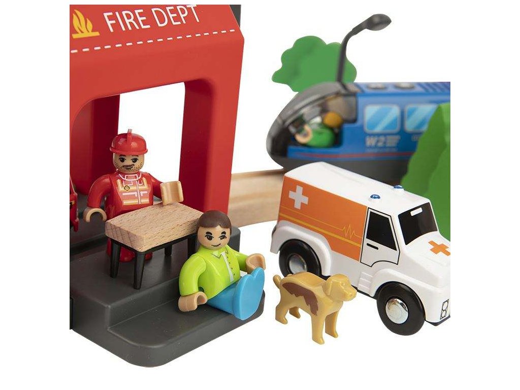 Ez a Firefighters Fa Train Train pálya tökéletes a kisvonat és a tűzoltómentés szerelmeseinek, szórakozást és oktatást nyújt fejlődésük minden lépésében.