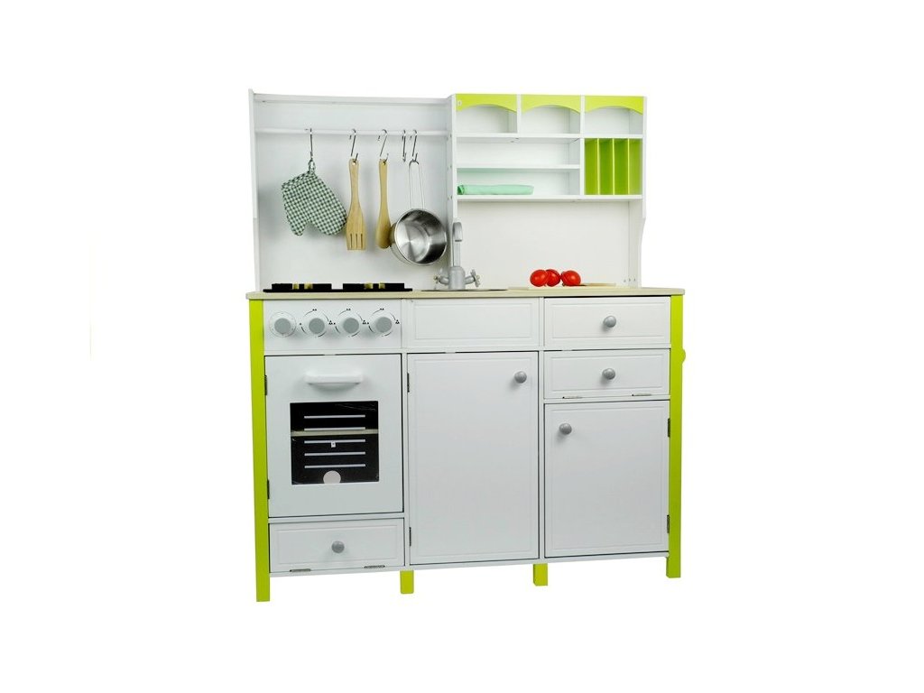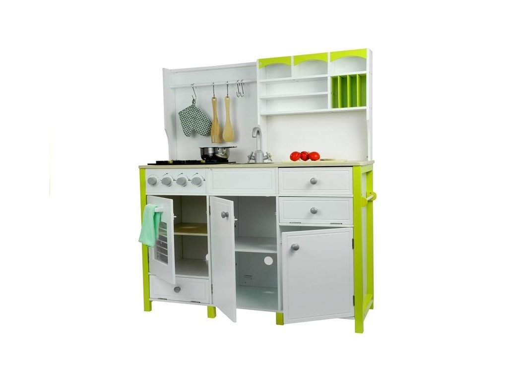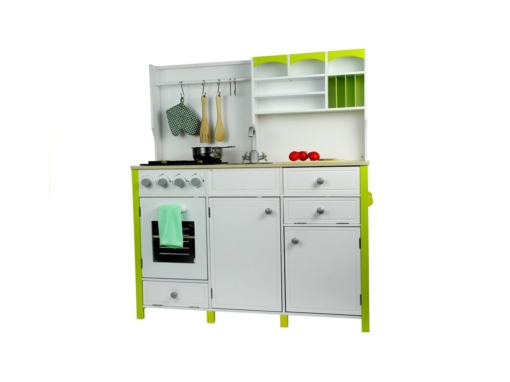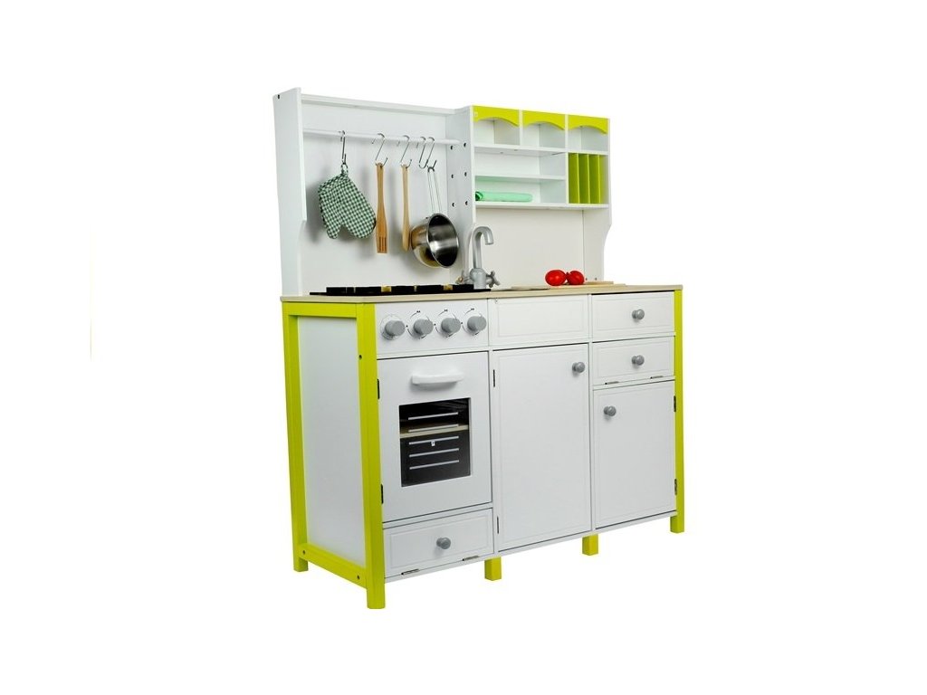 Egy gyönyörű fából készült konyha , amelyet a valósághű kialakítás, a funkcionalitás és a növekvő gyermekek számára megfelelő méretek jellemeznek. Ennek köszönhetően a gyermek megismeri és megtanulja az alapvető házimunkát. A gyerekkonyha tűzhellyel , polcokkal , fiókkal , sütővel és mosogatóval felszerelt . A konyha nagyon jó minőségű anyagokból készült.