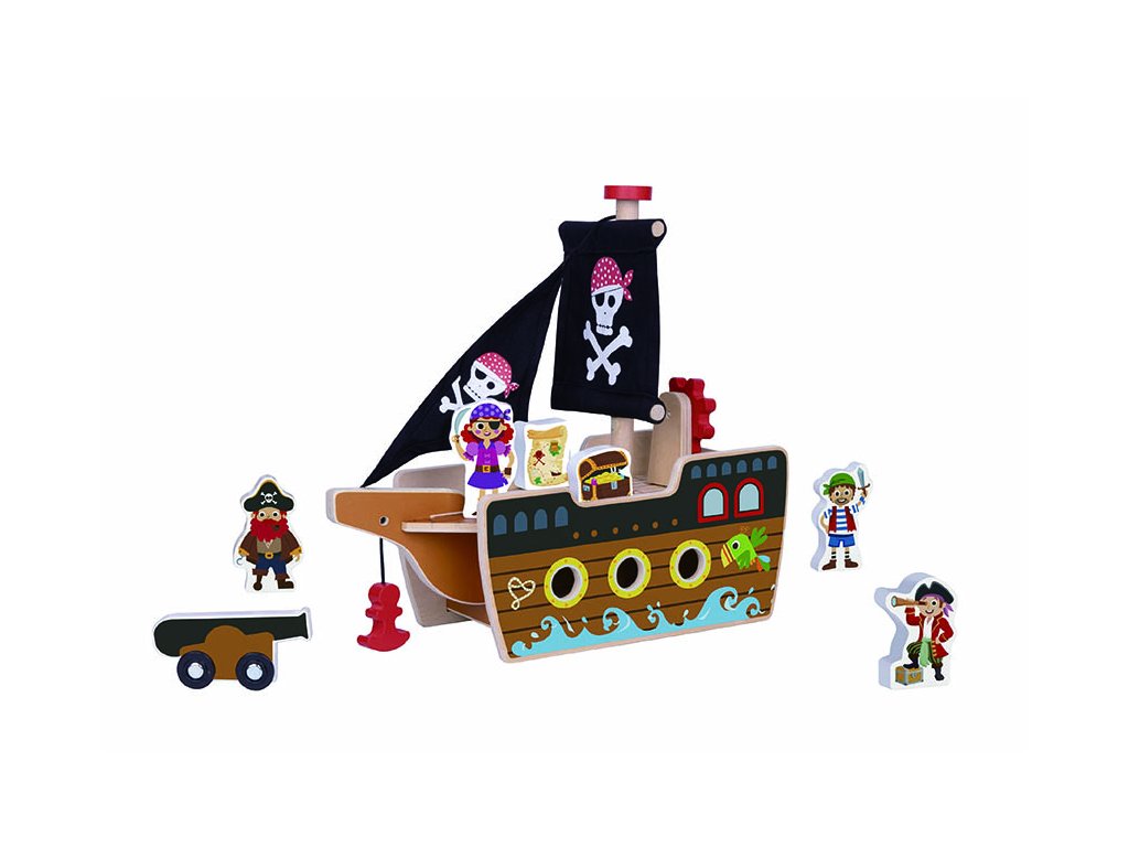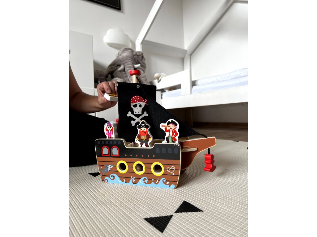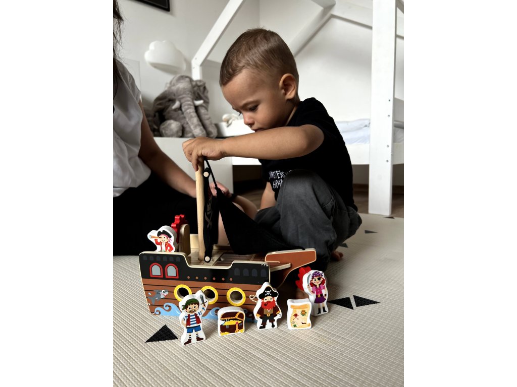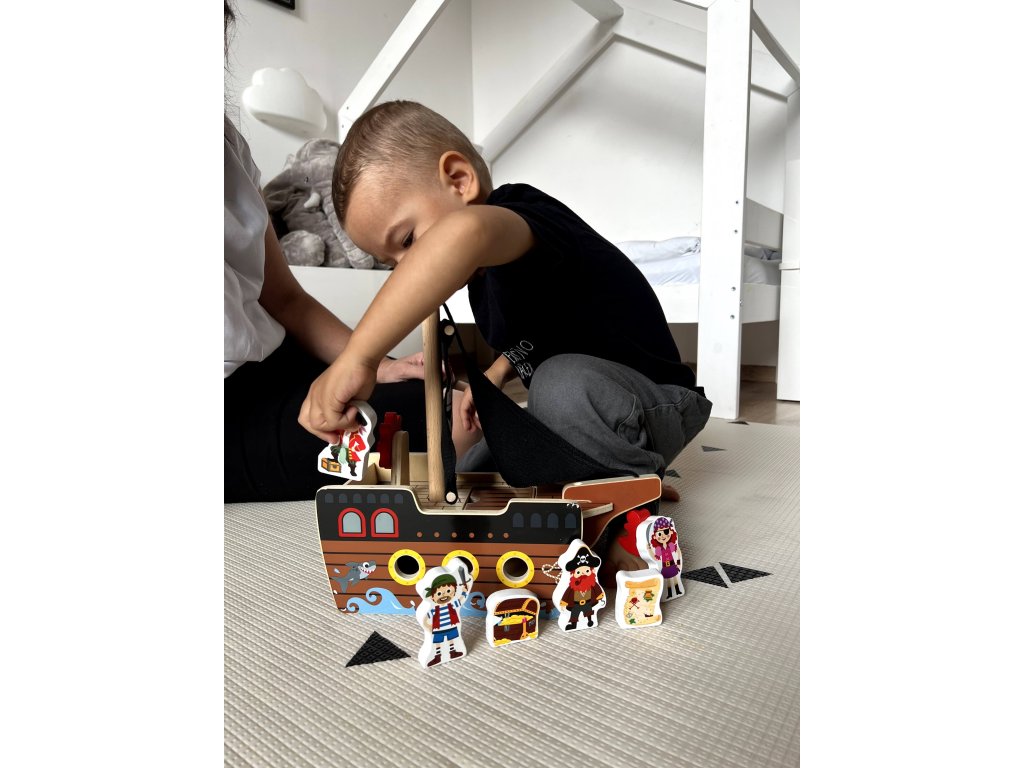 Ez a fából készült kalózhajó figurákkal ideális gyermeke kreativitásának és finommotorikus készségeinek fejlesztésére, szórakozást és oktatást biztosít a növekedés minden lépésében.