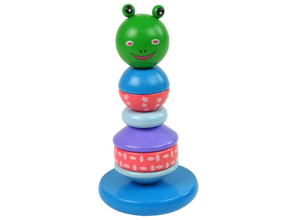A fa összecsukható mérlegtoronyban 6 db, különböző méretű és mintázatú lekerekített korong található. A legtetején egy aranyos béka feje található. Az alapban egy csap található az elemek elhelyezéséhez. Félkör alakú, így minden érintésre ellaposodik, így megnehezíti a tömb felhelyezését a hegyére.