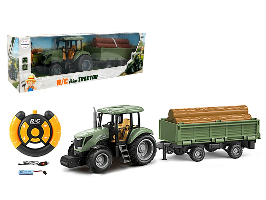A csomag tartalmaz egy utánfutót is, amelyre a gyerekek "fát" rakhatnak, ami tovább növeli a játékelményt. A traktort az árban lévő akkumulátorok működtetik. A traktor vezérlése az intuitív távirányítónak köszönhetően nagyon egyszerű.