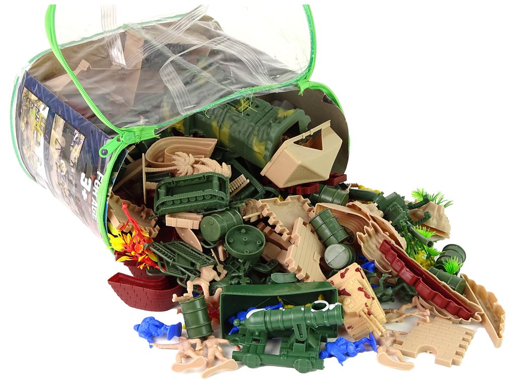 A készlet számos elemet tartalmaz egy nagy csatatér létrehozásához, ahol védőfalakat építhetsz, lenyűgöző kilátót építhetsz a bejövő ellenségek ellenőrzésére, fegyvereket helyezhetsz el csapataid számára. Az olyan járművek, mint a tankok, nagy tűzerőt képviselnek, míg a fák és hordók valósághűséget adnak, és harci környezetet teremtenek.
