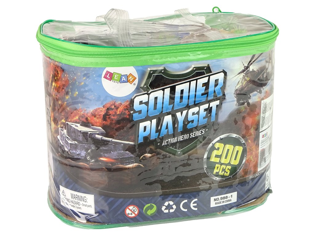 Fegyverekből és elektromos autókból álló katonai figurák készlete 200 elemmel