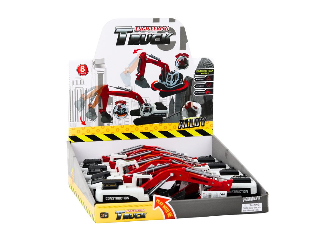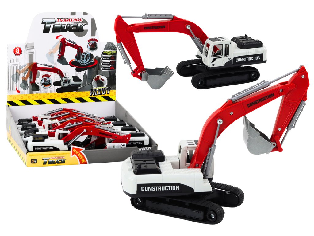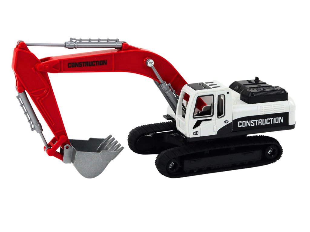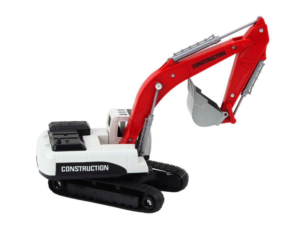A fémlapáttal ellátott lánctalpas kotró, fehér-piros színben, lenyűgöz részleteivel. Az állítható gém és a 360 fokban elforgatható fülke valósághű szórakozást biztosít.