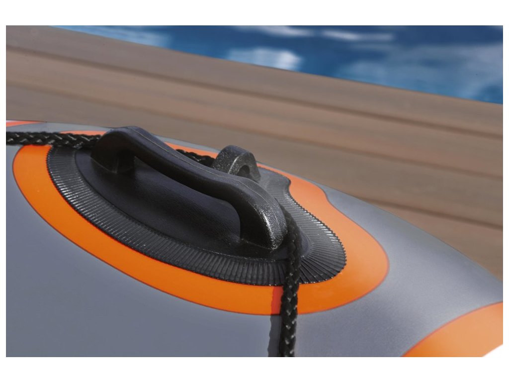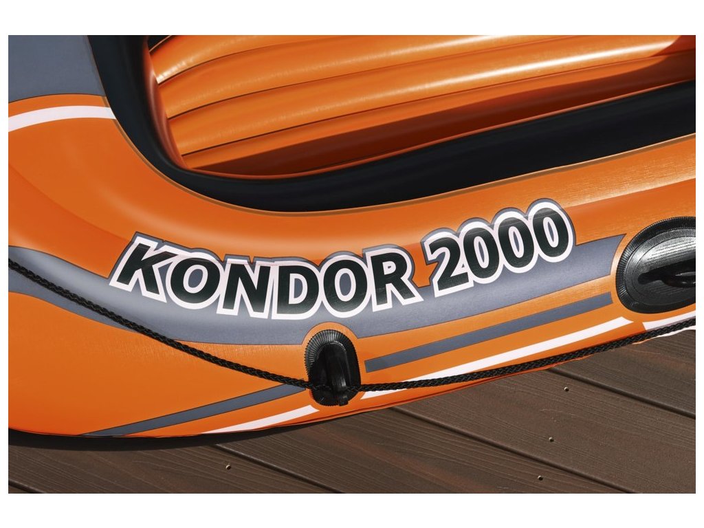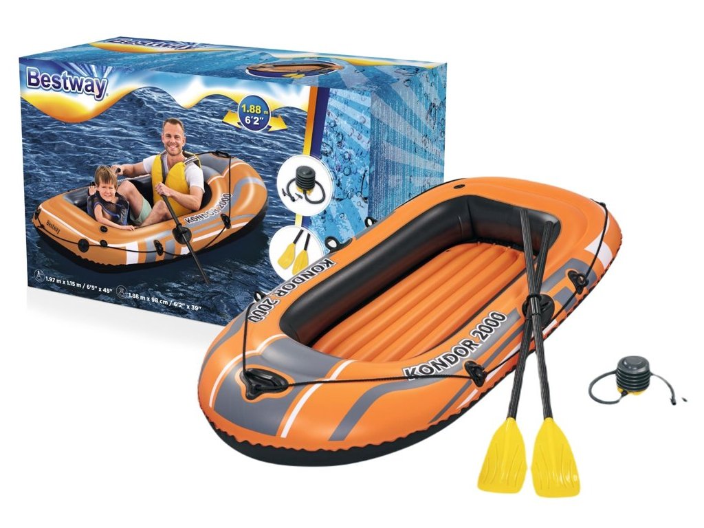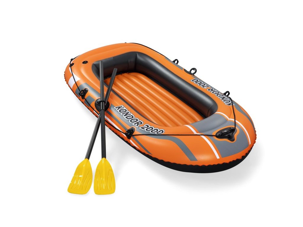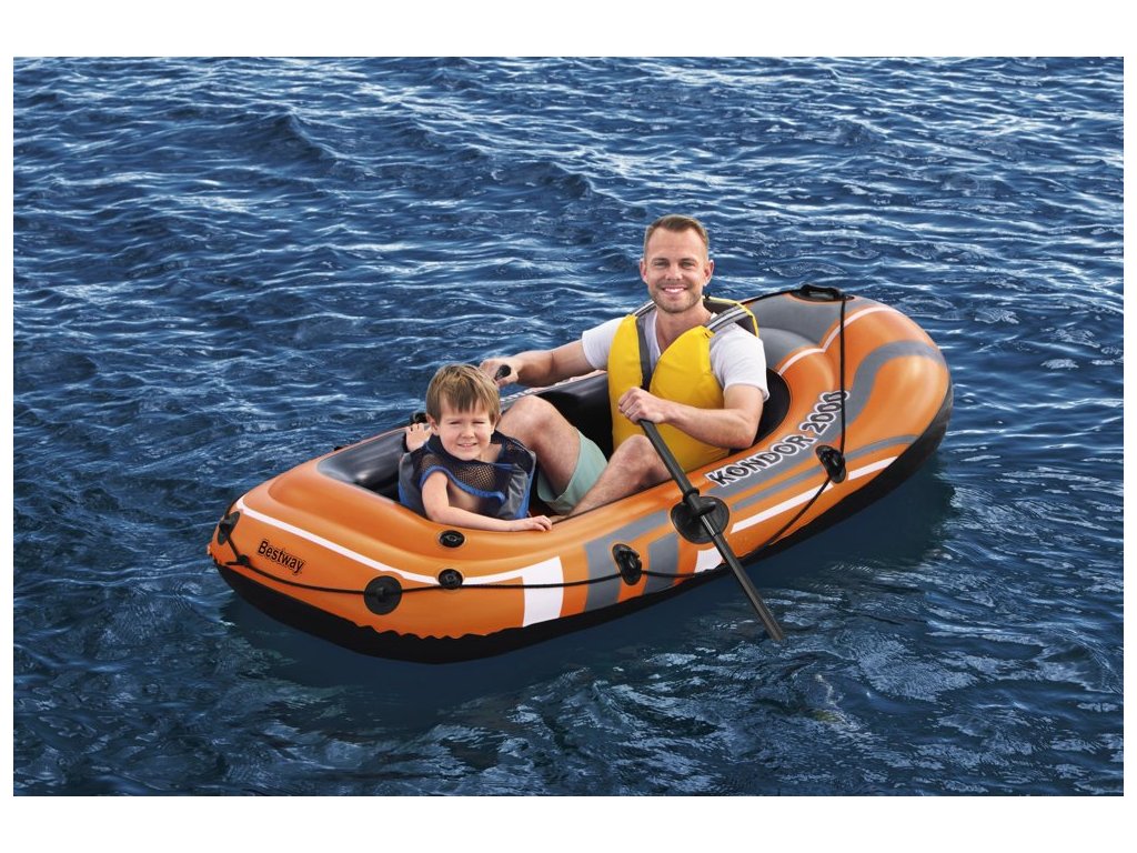 A felfújható csónakot két személy (felnőtt és gyermek) számára tervezték, és ideális egy tóhoz vagy medencéhez való szabadidős kirándulásokhoz. Sérülésálló vinilből készült. A csónak padlója felfújható, ami növeli az üléskényelmet.