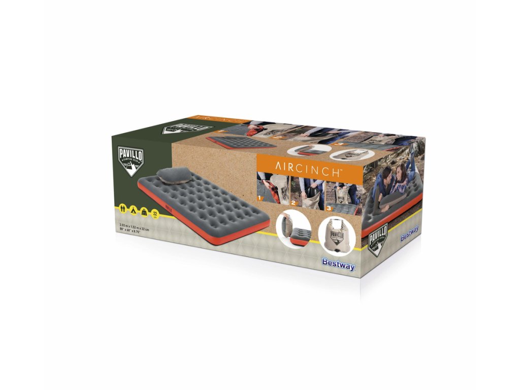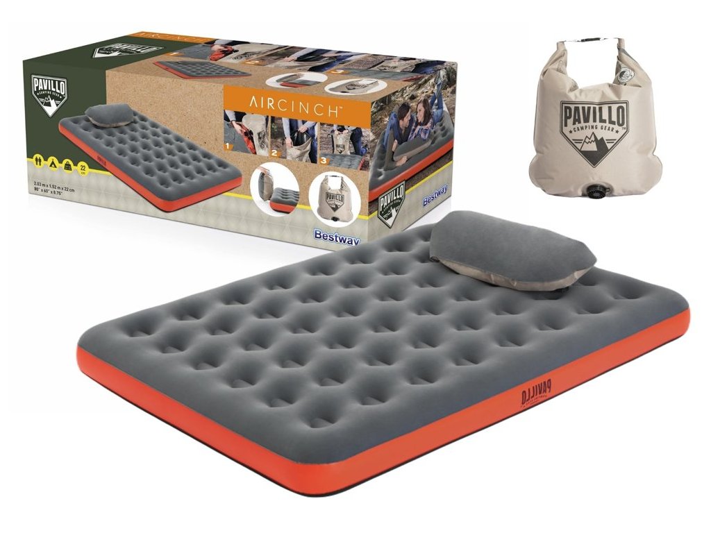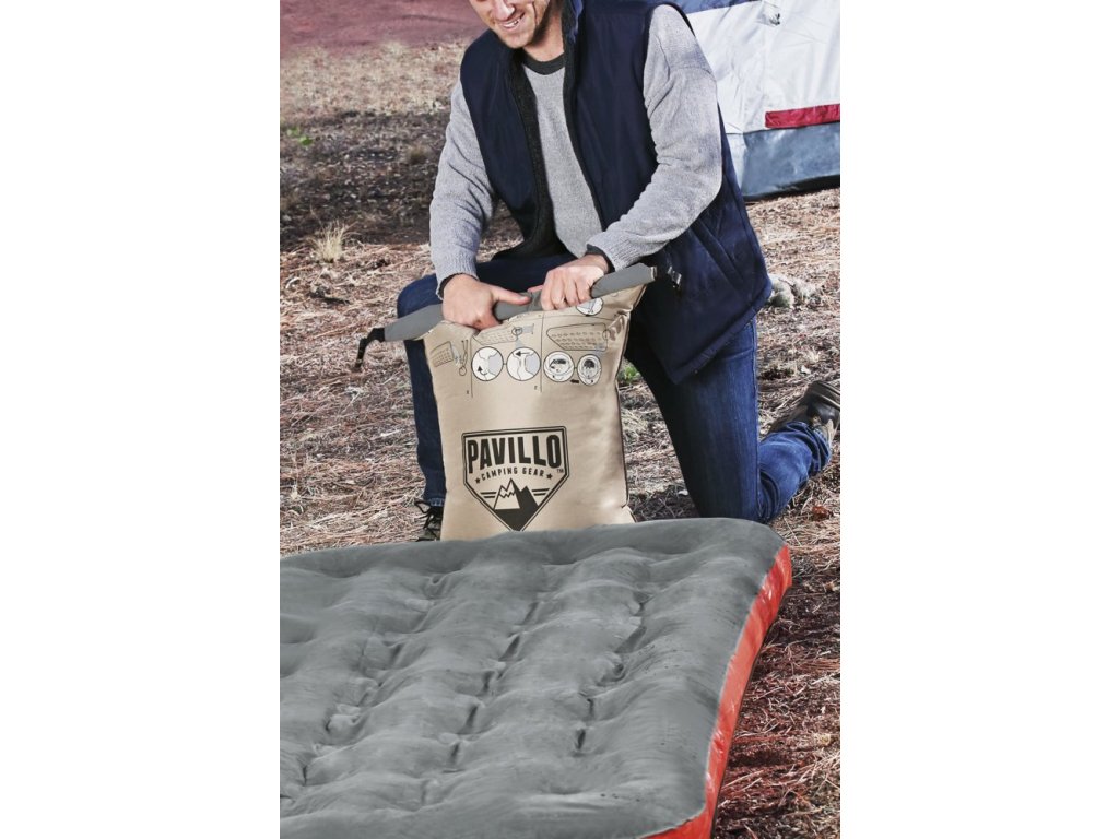 A két személyes utazómatrac beltéri és kültéri használatra készült. Az innovatív zsákszivattyúnak köszönhetően 90 másodperc alatt felfújhatod, és reggel könnyen leeresztheted a gyorscsavaros szelepnek köszönhetően.
