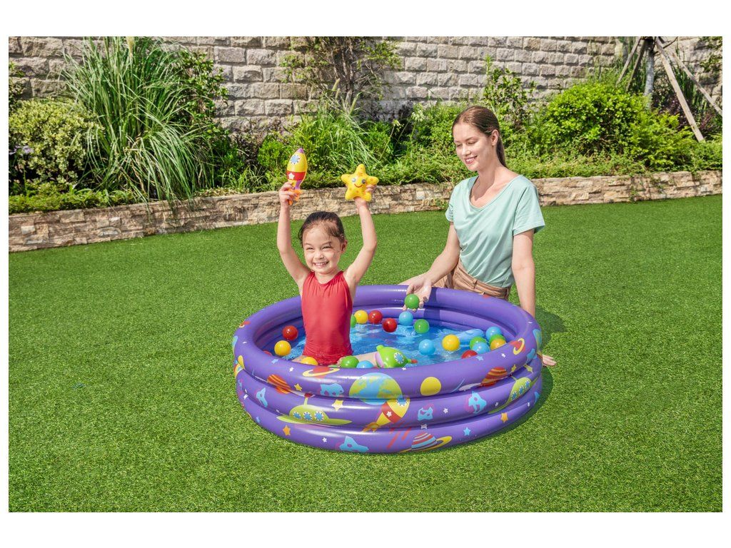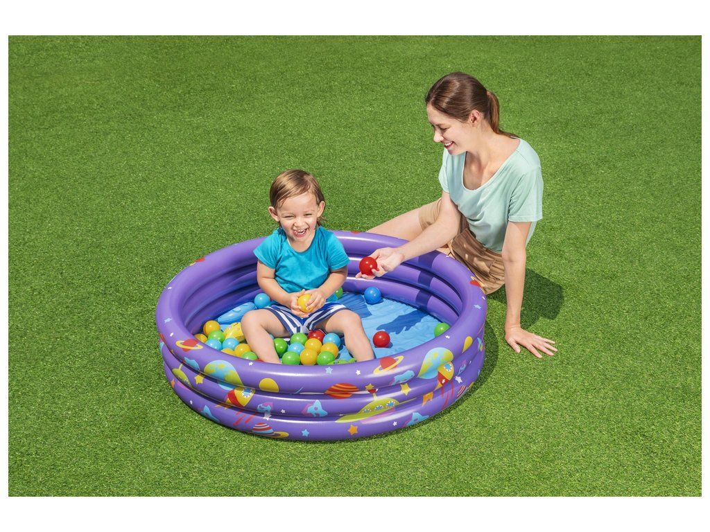 A felfújható medence mozgást és szórakozást biztosít gyermekének a vízben. Kis méreteinek köszönhetően 2 éves kortól ideális gyermekek számára. A medencét egész éves játékra tervezték a mellékelt labdák segítségével, amelyek vízben is használhatók. Könnyen felfújható és leereszthető, így könnyen tárolható.