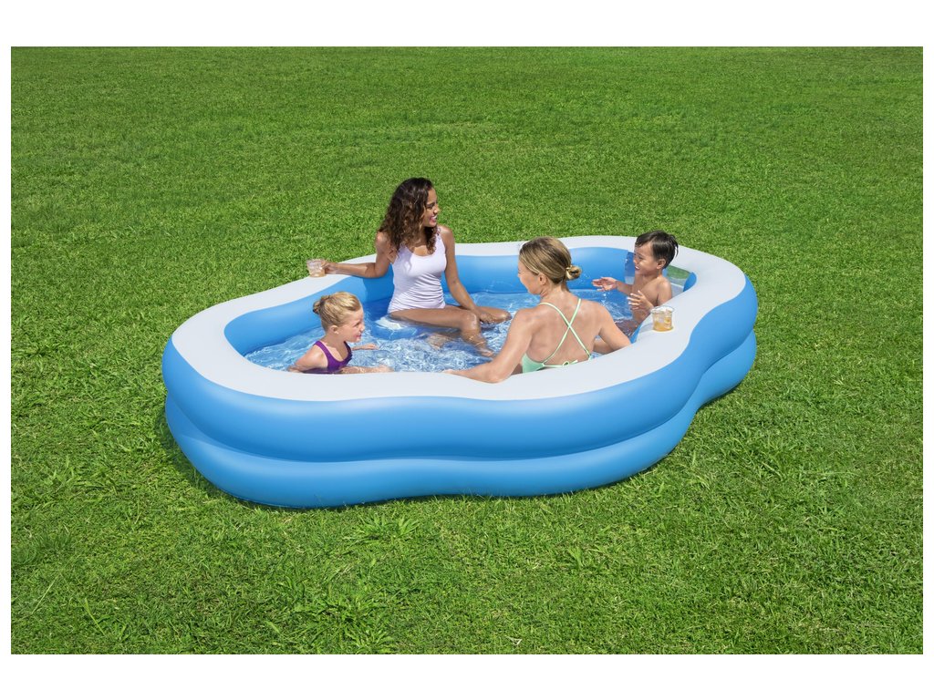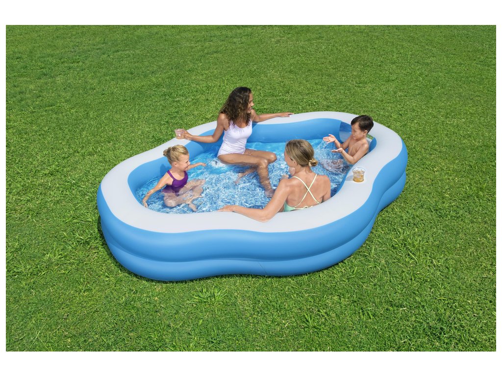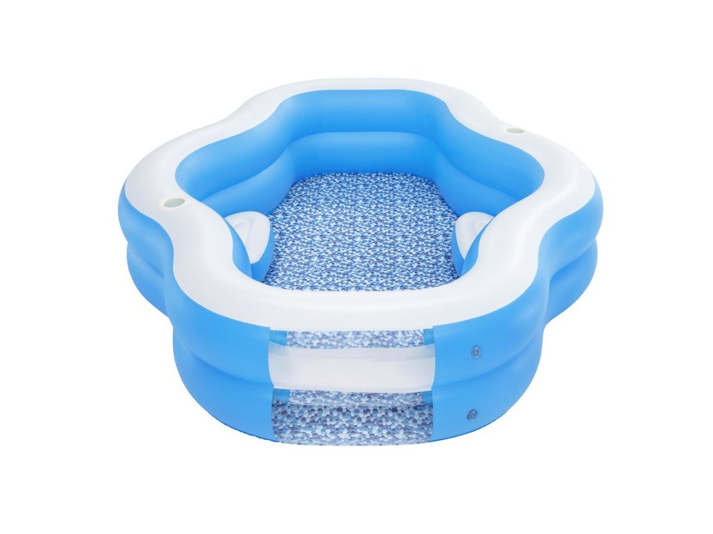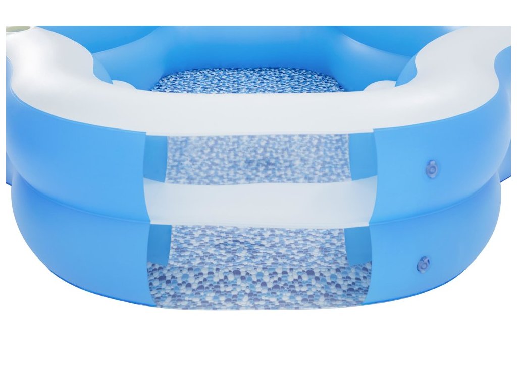 A felfújható medence az egész család és a barátok pihenésére szolgál. Különleges formája és beépített ülései lehetővé teszik, hogy otthona kényelmében lazítson. Felépítése stabil, a falak pedig kényelmes támasztást nyújtanak a hátnak. A medence tartós, sérülésálló vinilből készült.