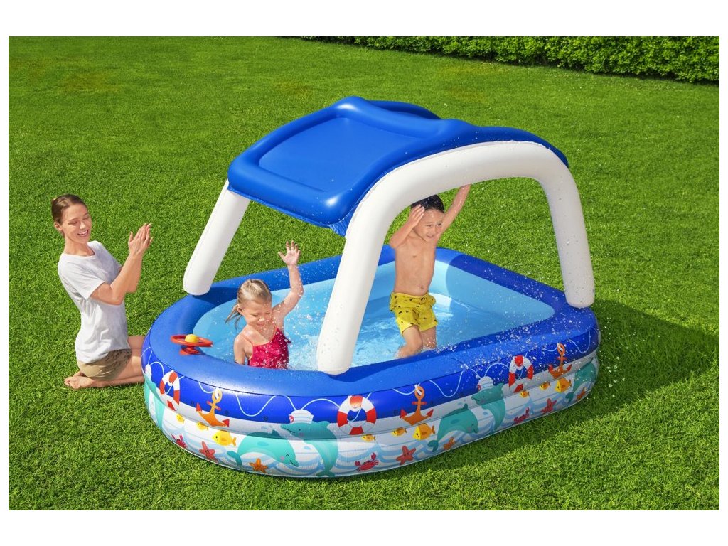 Felfújható csónak medence a legkisebbeknek tetővel 213x155x132 cm Bestway