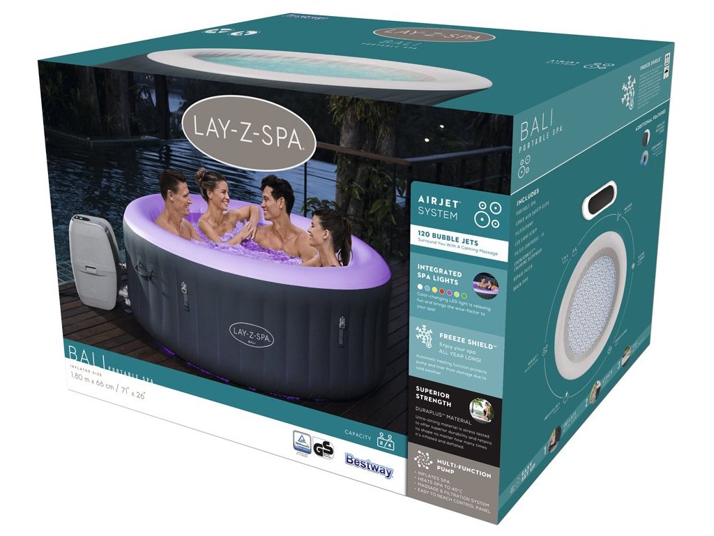 A Lay-Z-Spa® Bali AirJet™ Bestway egy kényelmes , felfújható pezsgőfürdő, amelyet az otthoni boldog pihenéshez terveztek.