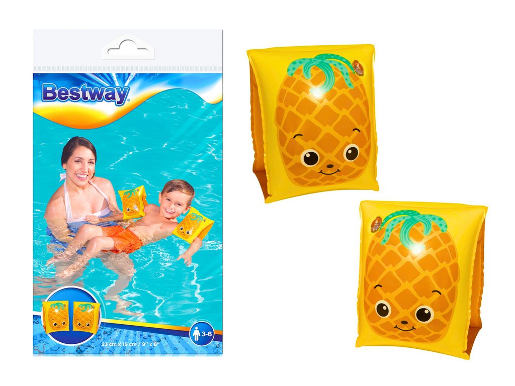 A vidám ananászmintával ellátott úszókarszalagok segítenek a gyerekeknek leküzdeni az első bizonytalanságokat a vízben való játék során. Színes kialakításuk motiválja a gyerekeket, hogy aktívak és játékosak legyenek, miközben biztonságot nyújtanak úszás közben. Tartós anyagból készültek, összecsukva könnyen felfújhatók és tömöríthetők, így ideális társuk bármilyen vízi kalandhoz.