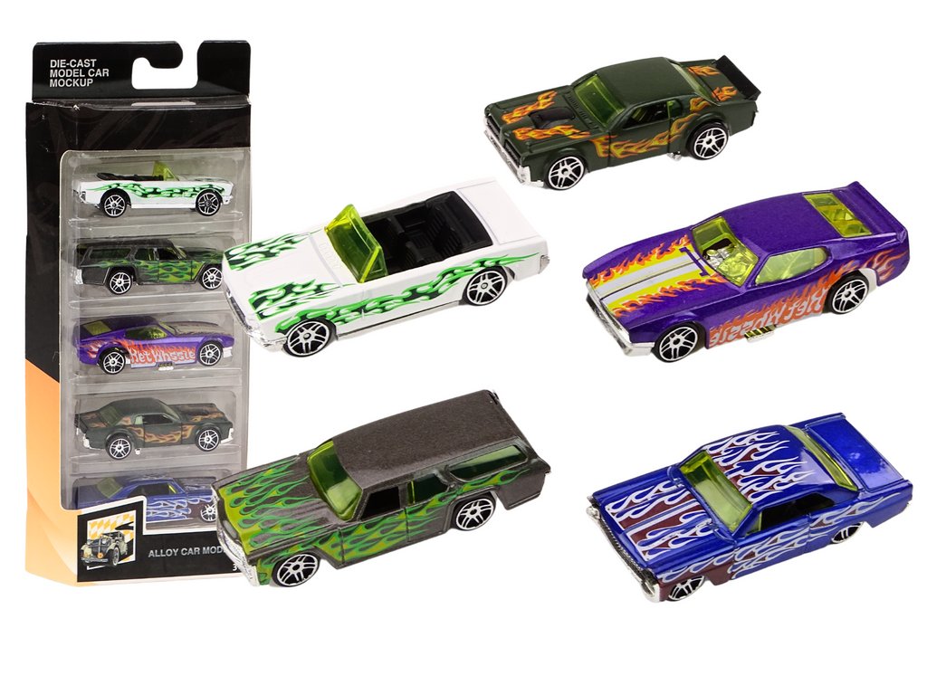 Az öt autómodellből álló készlet remek kollekció a sebesség és az akciók kis szerelmeseinek. Minden játékautó egyedi kialakítású , oldalain dinamikus lángok jelzik, hogy készen állnak egy izgalmas utazásra. A fém konstrukció biztosítja a tartósságot és a hosszú élettartamot még intenzív játékok során is. Az egyes játékautók 1:64 méretarányú és színes színei arra inspirálják a gyerekeket, hogy versenyeket szervezzenek, és saját, kalandokkal teli történetet alkossanak meg.
