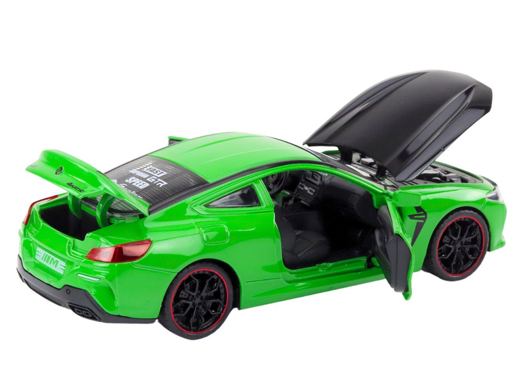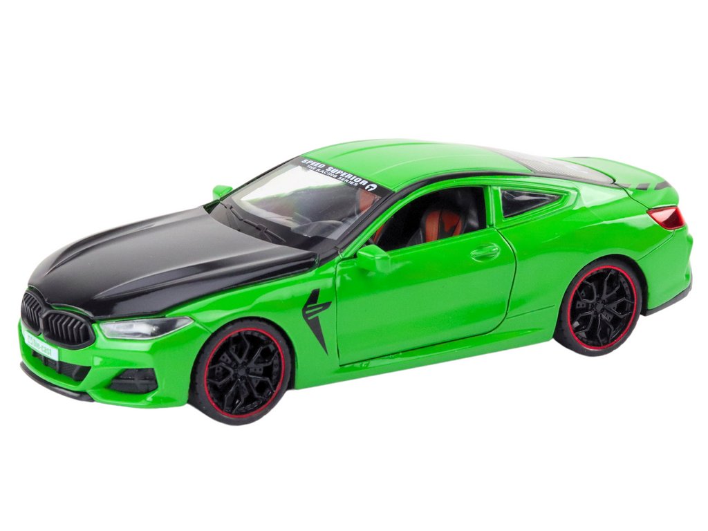 Fém sportautó dörzshajtással, nyitható részekkel, 1:24 méretarányú zöld