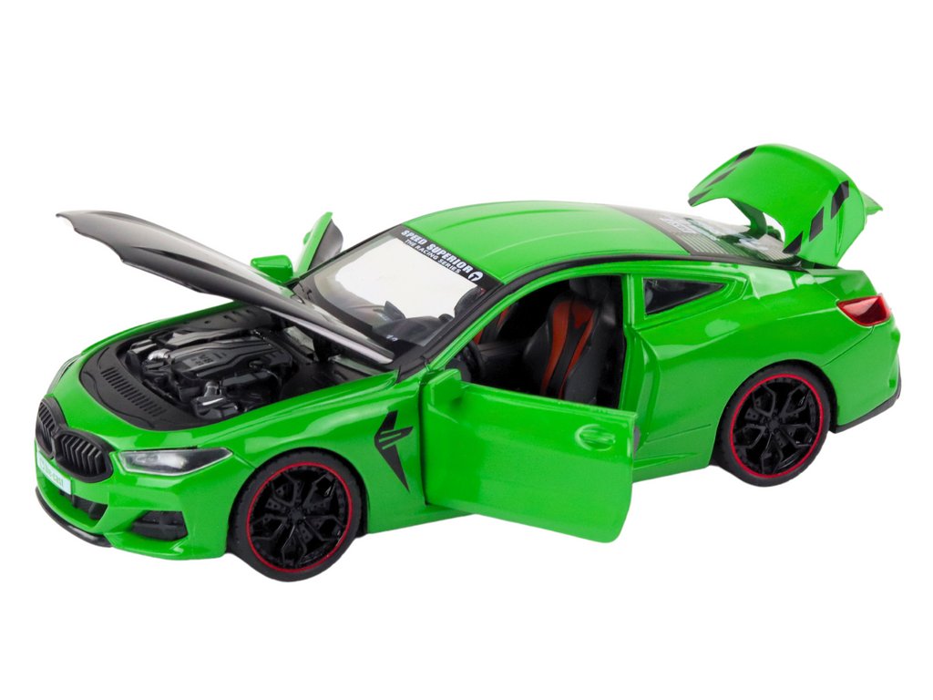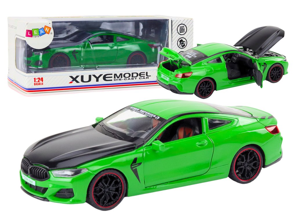 Egy kivételes sportautó modellt mutatunk be 1:24 méretarányban, amely minden autórajongót elbűvöl! Ezt a fémes autót dinamikus, szemet gyönyörködtető zöld szín jellemzi, amely kiemeli sportos karakterét. Lendkerékhajtással felszerelve izgalmas szórakoztató és valósághű vezetési élményeket nyújt. A modell nyitható ajtókkal, motorháztetővel és csomagtartóval rendelkezik, ami még valósághűbb játékot és az autó belsejének megcsodálását teszi lehetővé. Ez a sportautó ideális választás gyűjtők, gyerekek és minden autórajongó számára. Tökéletes ajándéknak, amely sok örömet és több órányi lenyűgöző szórakozást fog okozni.
