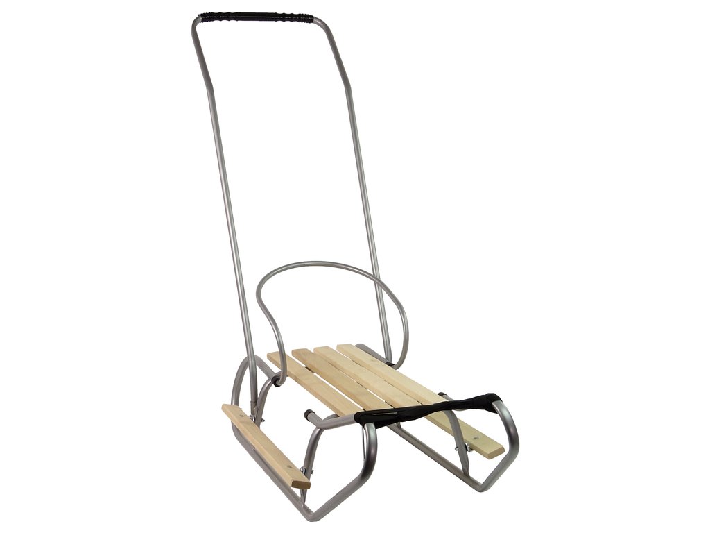A szán fából és fémből készült, ezért erős és robusztus, ugyanakkor kényelmes és nem túl nehéz. A tolórúd és a háttámla könnyen eltávolítható.