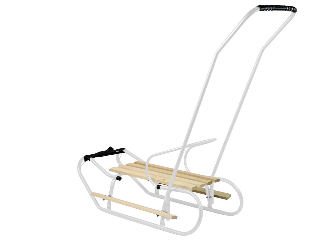 A szán fából és fémből készült, ezért erős és robusztus, ugyanakkor kényelmes és nem túl nehéz. A tolórúd és a háttámla könnyen eltávolítható.