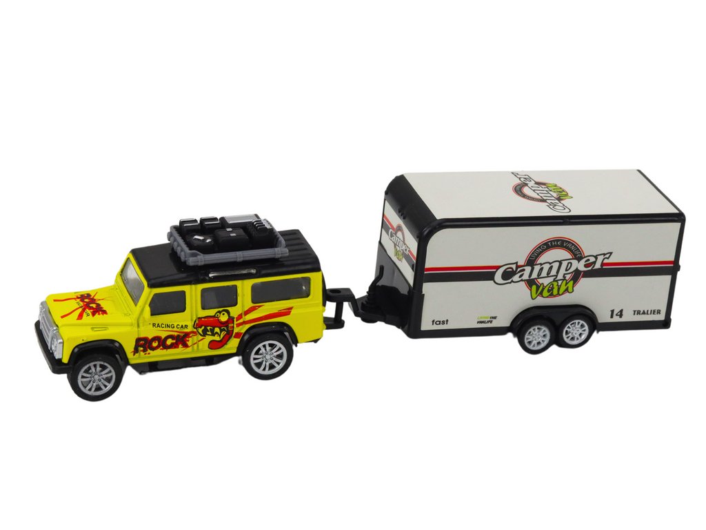 Fém terepkocsi mix lakókocsival