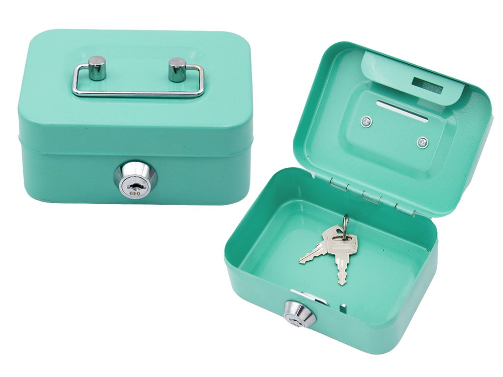 A praktikus tárolóhelyként is funkcionáló fém pénztárgép remek megoldás gyerekeknek és felnőtteknek. Tartós fémből, elegáns türkiz színben készült, nem csak funkcionális, de esztétikus is. A pénztárban van egy pénztartó, amely lehetővé teszi az egyszerű megtakarítást.