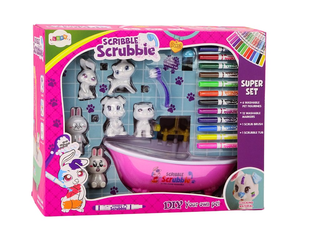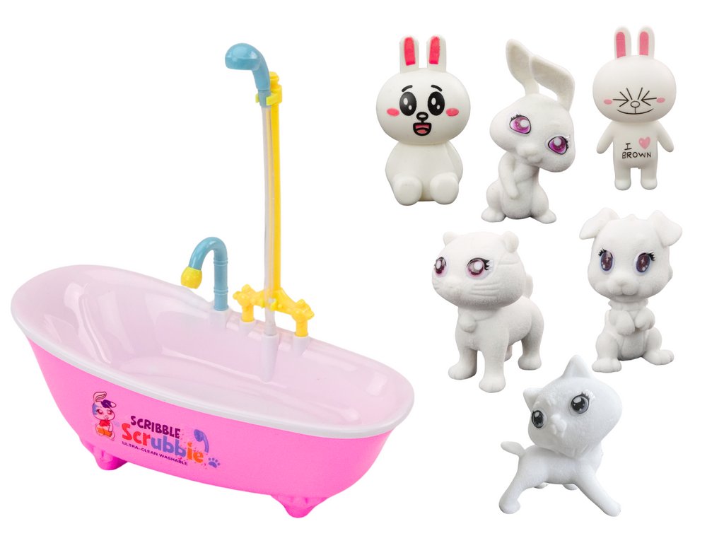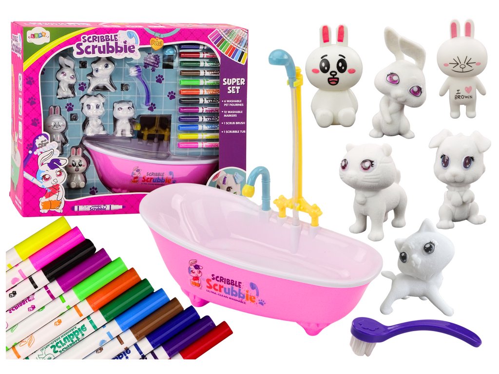 Festés és fürdőszoba szett állatoknak 6 db-os fürdőkád rózsaszín markerekkel