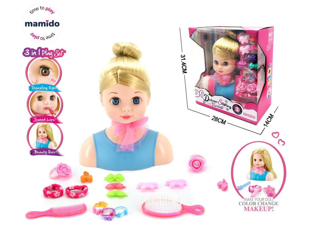 Fésűs fej kiegészítőkkel és sminkkel kék, szőke