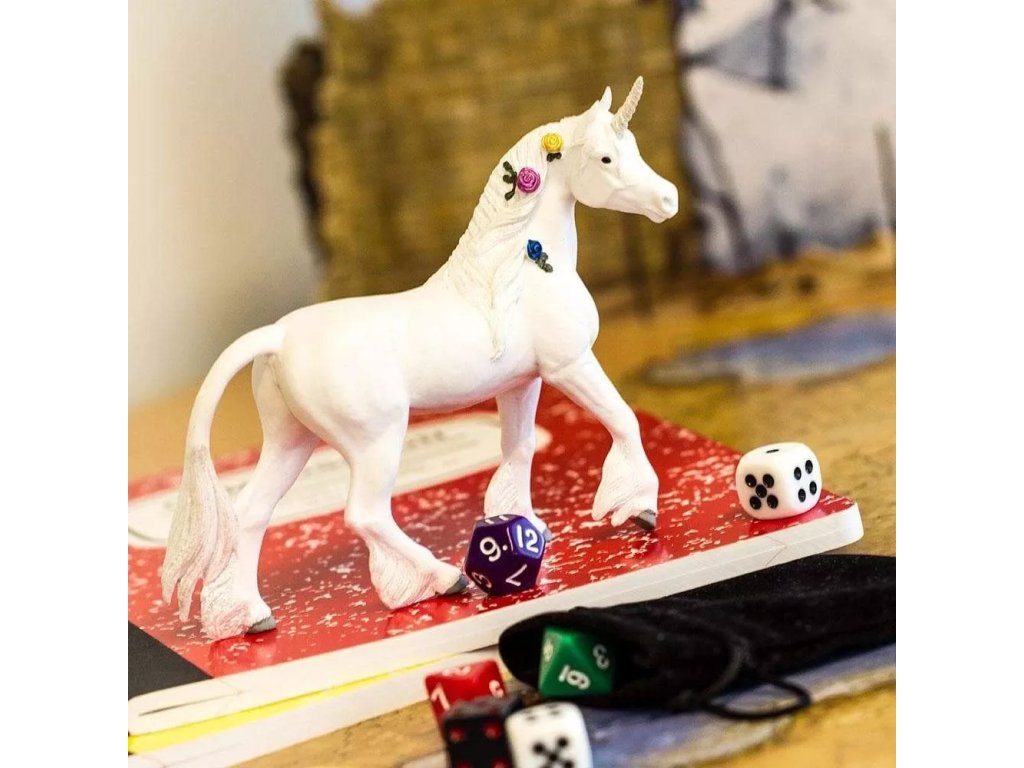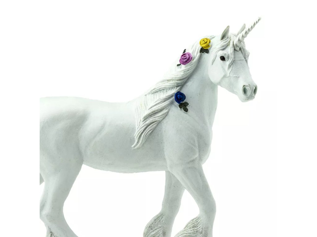 Az egyszarvú figura egy mitikus lényt ábrázol, amely egy lóhoz hasonlít, jellegzetes szarvval. Erőt, tisztaságot és szépséget szimbolizál, alkalmas kiegészítőként játékokhoz és gyűjteményekhez.