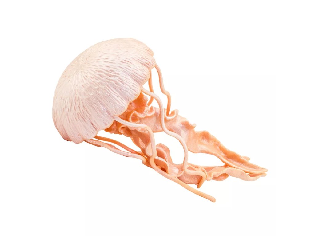 A medúza figura a jellegzetes „zselés” fejet és a lobogó csápokat ábrázolja. A medúzák a tengerekben élő egyik legrégebbi, sokszervi állatok.
