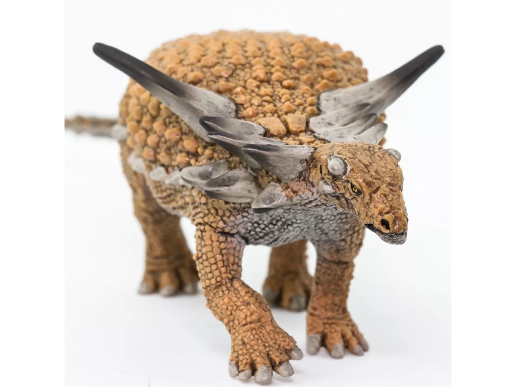 Sauropelta figura – szó szerint „páncélozott gyík” – hűen ábrázolja a növényevő dinoszauruszt, melynek hátán páncéllemezek, elülső részén pedig tüskék voltak, melyek megvédték a ragadozóktól.