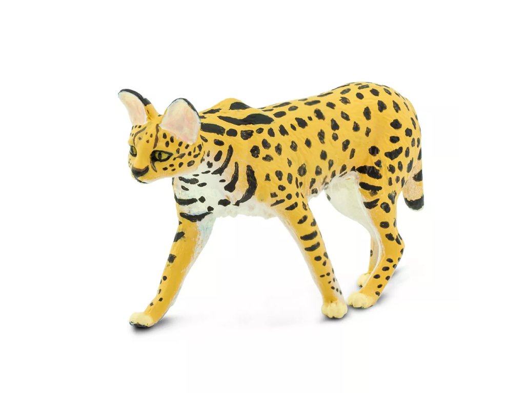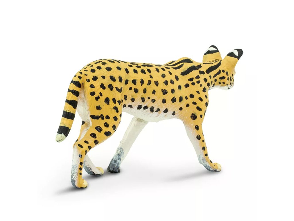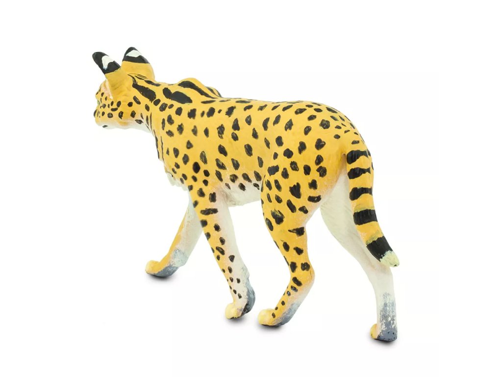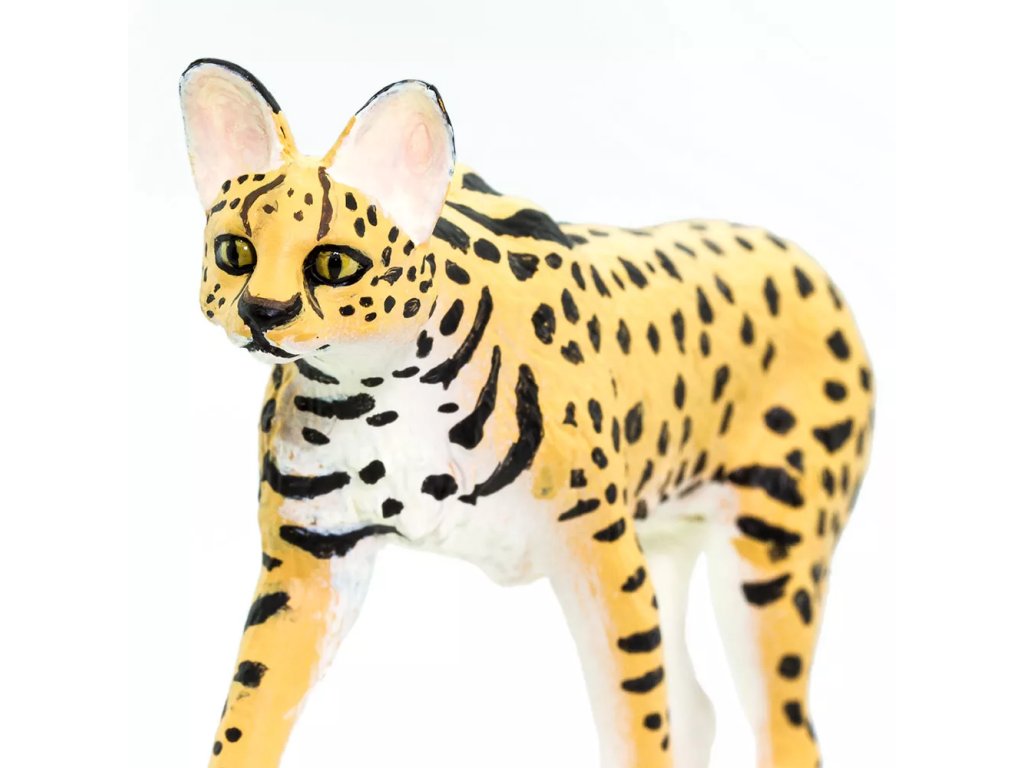 A részletesen kidolgozott szervál figura az elegáns afrikai macskafélét ábrázolja, jellegzetes színes mintázattal és hangsúlyos fülekkel. A modell alkalmas játékra és szemléltető oktatási bemutatókra is.