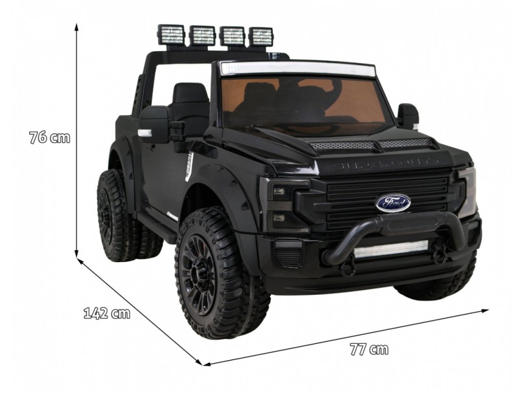 A gyerekeknek szánt elektromos autó a Ford márka licenc szerinti terméke. Ford Super Duty elektromos játékautó négy nagy teljesítményű 45W -os villanymotorral és 12V 14Ah akkumulátorral. A nagy EVA hab kerekek kényelmes utazást biztosítanak. A hátsó kerekek megduplázottak, ami segít az autónak leküzdeni a terepet és a burkolatlan típusú felületet.