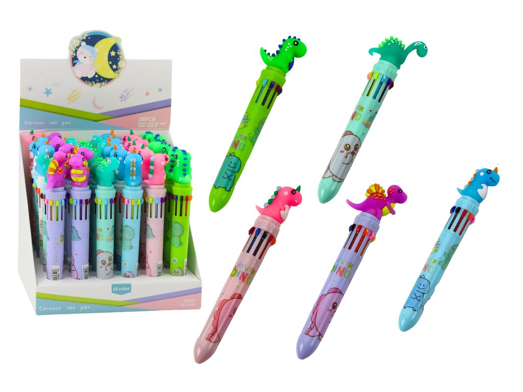 Ez a funkcionális toll ötvözi a szórakozást a praktikummal, és akár 10 színt is kínál egyetlen íróeszközben. A tollat egy aranyos dinoszaurusz motívum díszíti, amely biztosan felkelti a gyerekek figyelmét és érdekesebbé teszi a mindennapi írást. Többféle tintaszínt tartalmaz, lehetővé téve az egyszerű színváltást anélkül, hogy tollat kellene cserélni. Mindegyik szín tökéletes különböző célokra, a rajzolástól az írásig.