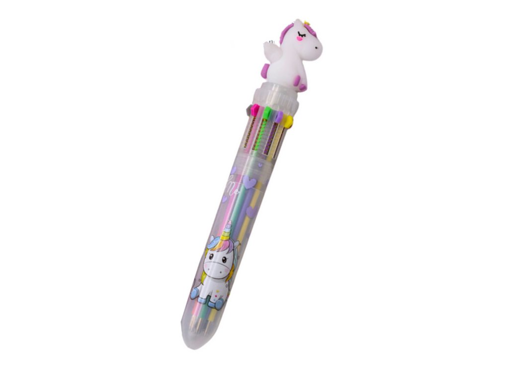 Ez a funkcionális toll ötvözi a szórakozást és a praktikumot azáltal, hogy akár 10 színt is kínál egyetlen íróeszközben. Egy aranyos egyszarvú díszítő motívumával biztosan magával ragadja a gyerekeket, és izgalmasabbá teszi a mindennapi írást. Többféle tintaszínt tartalmaz, lehetővé téve az egyszerű színváltást anélkül, hogy tollat kellene cserélni. Mindegyik szín tökéletes különféle felhasználásra, a rajzolástól az írásig.