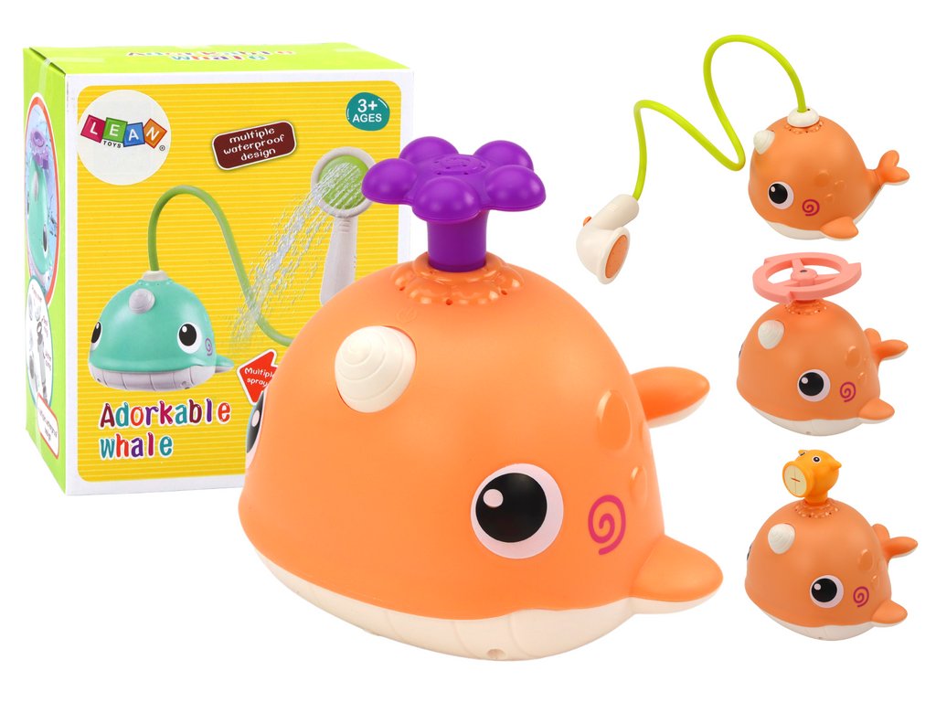 A játék aranyos bálna alakú, ami nem csak szórakoztat, hanem serkenti a gyerekek fantáziáját is. Egyedülálló kialakítása lehetővé teszi a különféle kiegészítők használatát, ami számos játéklehetőséget nyit meg. A bálna egyszer zuhanyként szolgálhat, máskor pedig kis szökőkúttá változhat, vagy érdekes módon vizet permetezhet. Emellett az oldalra fröccsenő víz gazdagítja az élményt, és látványos és izgalmas vizuális effektusokat hoz létre.