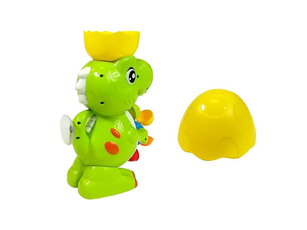 Egy aranyos dinoszaurusz formájú vidám játék a fürdőkádban vagy a medencében való játékhoz és fürdéshez készült . A fürdőkádban lévő dinoszaurusz nagyszerű megoldás lesz azoknak a szülőknek is, akiknek gyermeke fél a víztől és nem hajlandó fürdeni – a játék biztosan biztosítja, hogy a gyermek jól érezze magát a vízben.
