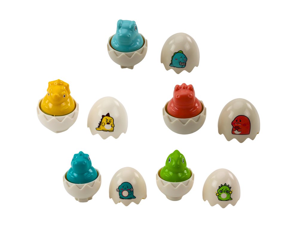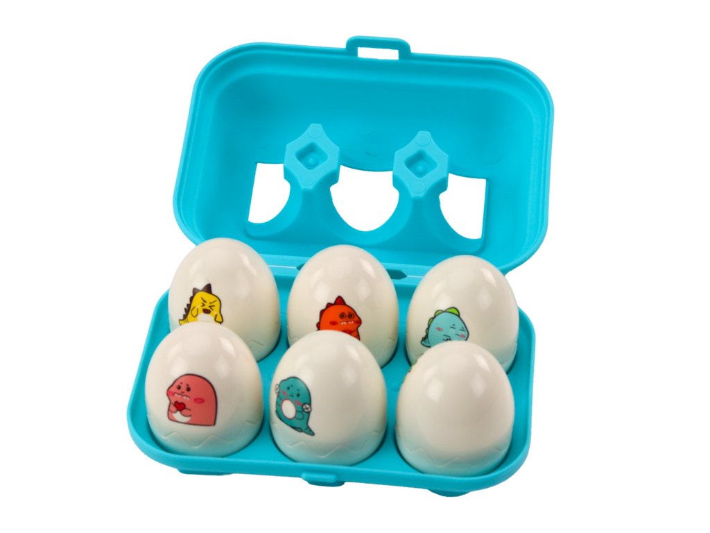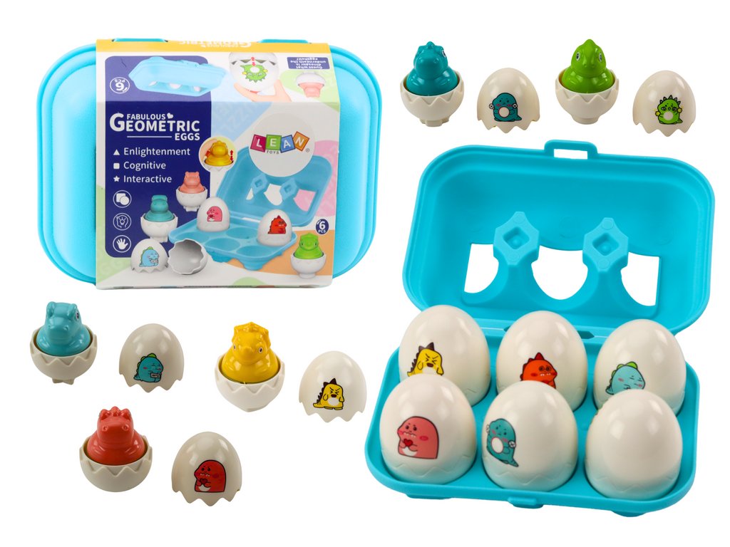 A hat geometrikus dinoszaurusz tojásból álló készlet ideális oktatójáték a legkisebb gyerekek számára, amely a szórakozást a tanulással ötvözi. Minden színes tojás vidám dinoszaurusz motívummal egy meglepetést rejt egy kis dinoszaurusz formájában.