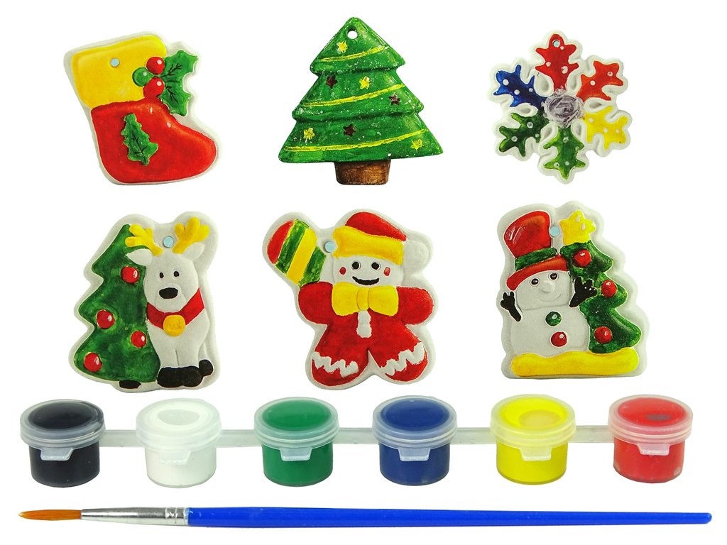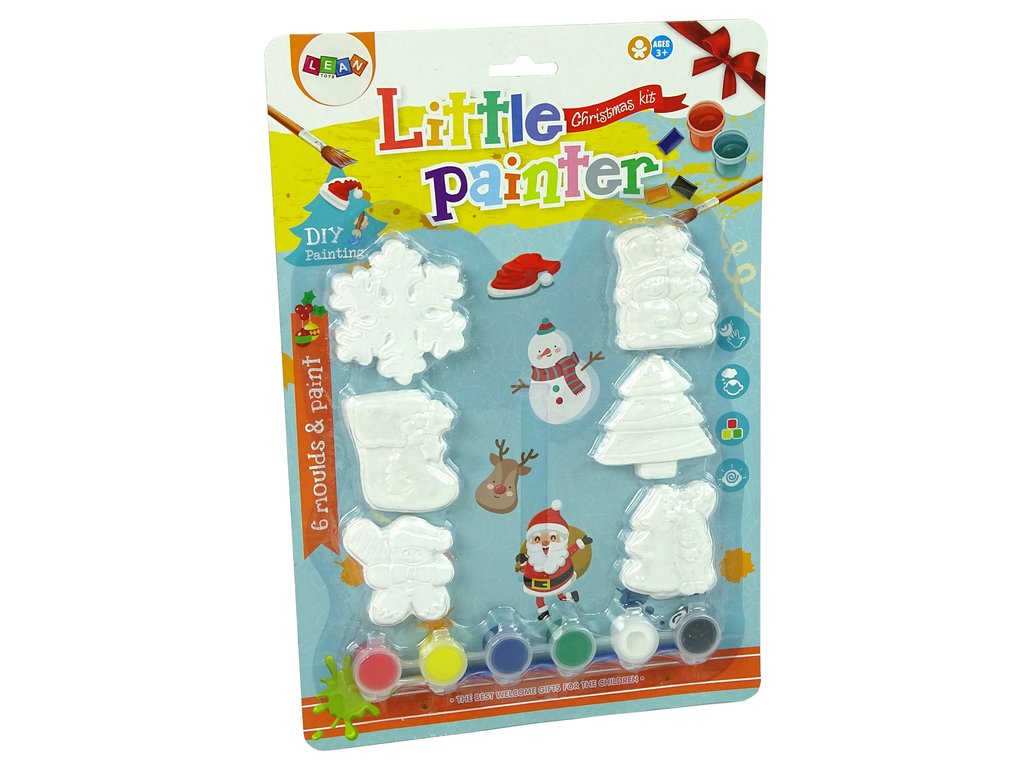 Gipszöntvény készlet színes karácsonyi motívumokkal - fa, hóember - festéshez