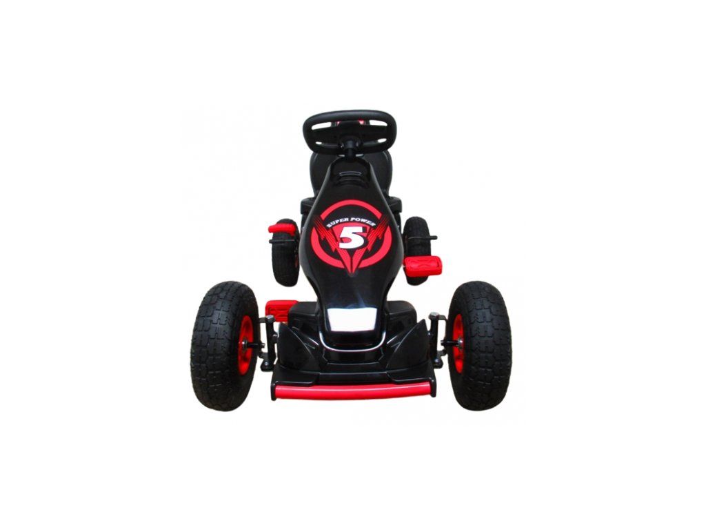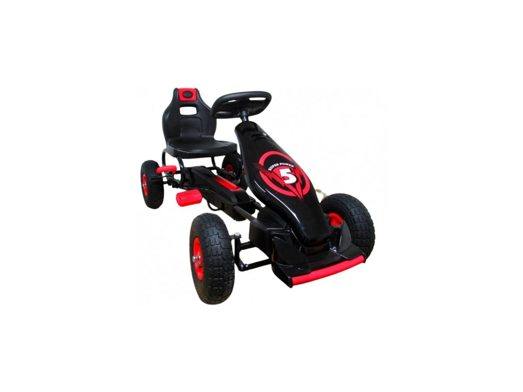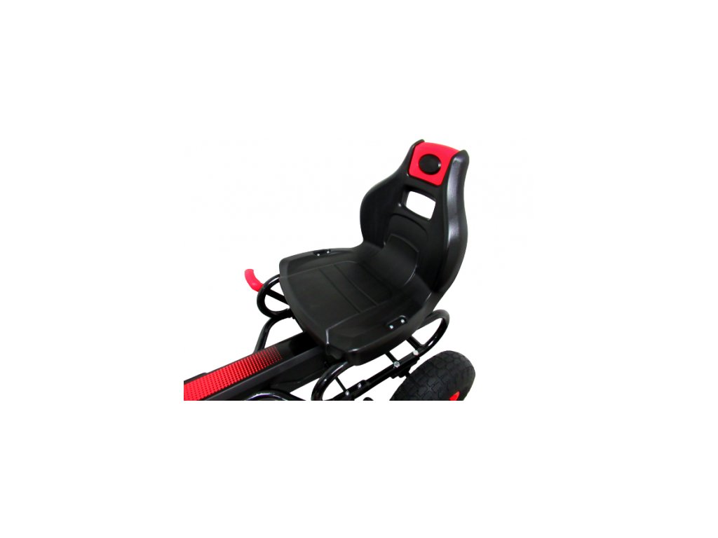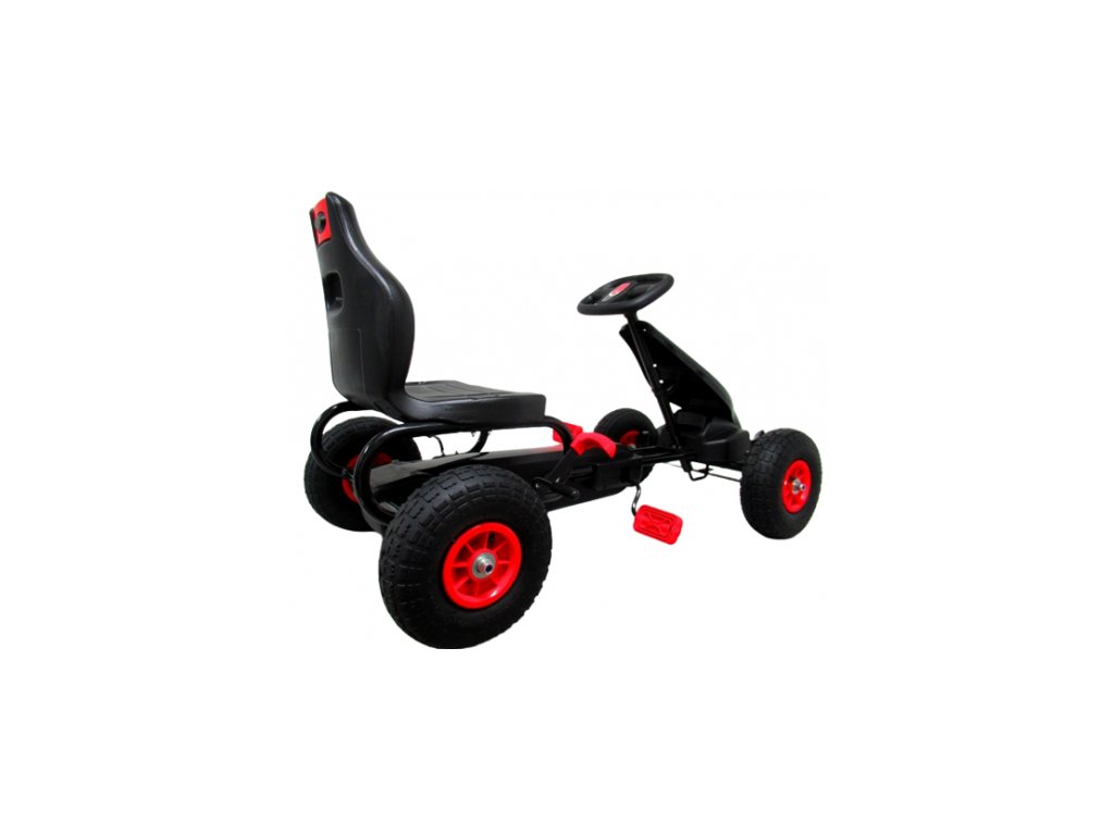 A gyermekpedálos gokart biztonságos és kényelmes. Speciálisan kialakított kerettel és egyedi kialakítással rendelkezik. Mindenekelőtt felfújható kerekekkel rendelkezik, amelyeknek köszönhetően kényelmesebbé válik az utazás. A gokart kézifékkel és 2 fokozatban állítható üléssel rendelkezik.