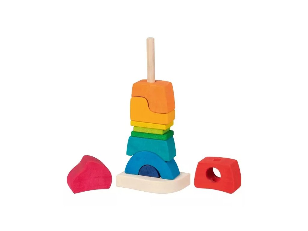 Színes fa egymásra rakható vár a német Goki márkától, amely támogatja a játékot és a tanulást – fejleszti a finommotorikát, a szem-kéz koordinációt és segít elsajátítani a színeket.