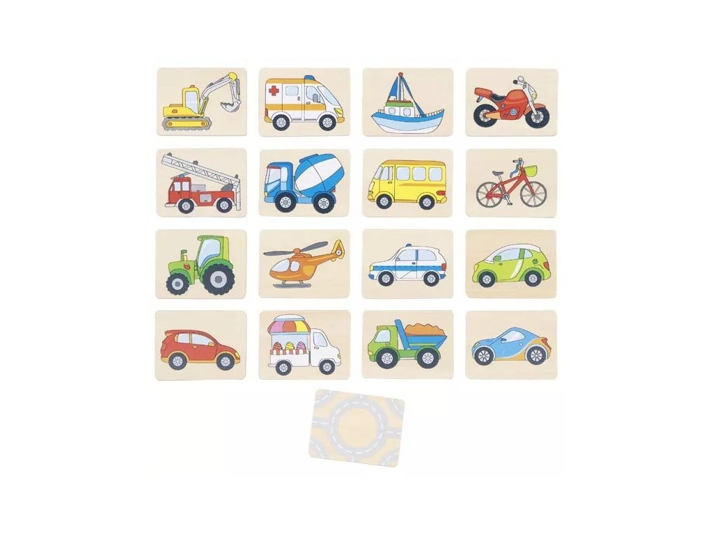 Fa pexeso közlekedési eszközök motívumaival a német Goki márka műhelyéből, 3 éves kortól ajánlott gyermekeknek. A színes képek támogatják a többjátékos és az önálló játékot is.