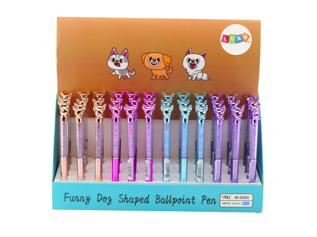 Ez a kivételes toll az elegancia és a funkcionalitás kombinációja. A végén egy kutya található, amely elegáns megjelenést kölcsönöz neki. A kis, csillogó gyémántokkal teli átlátszó tok hatékony fényvisszaverődést hoz létre, amely kiemeli a fényűző karaktert.