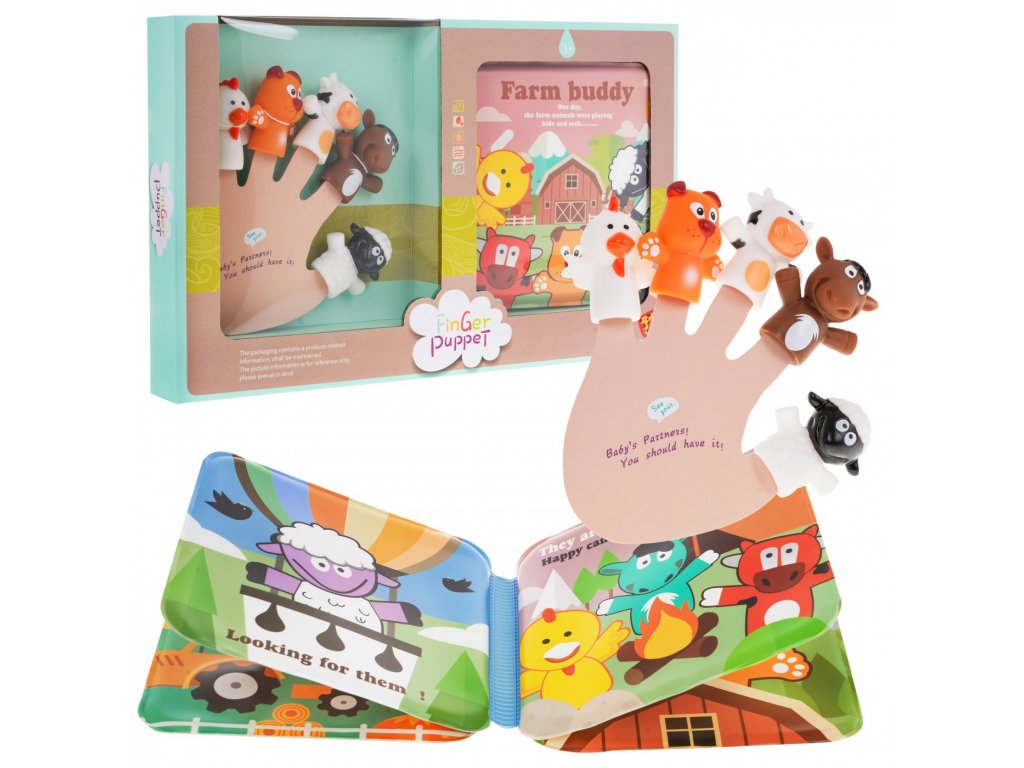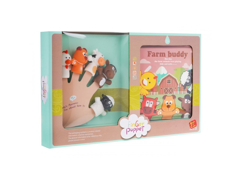 Ez az ujjbábokból és egy puha állatkönyvből álló készlet 3 éves és annál idősebb gyermekek számára készült. Az ujjbábok remek szórakozást nyújtanak a gyerekeknek, és egyben hatékony oktatási eszköz is. Ezzel a készlettel a gyerekek vagy a felnőttek olyan színházi darabokat játszhatnak, amelyekben a főszereplők olyan állatok, mint a csirke, kutya, szamár, tehén vagy bárány.