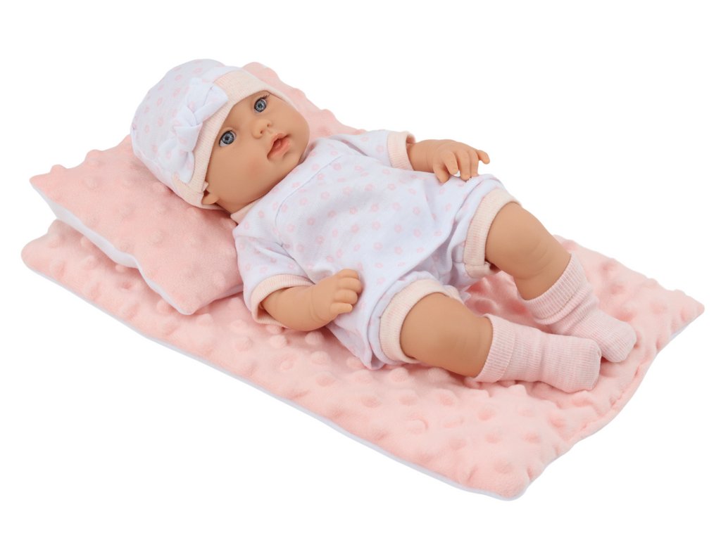 A paplanhuzat és a párna puha anyagból készült, amely biztosítja a baba és kis gondozója kényelmét. Az egész készlet a valósághű és lebilincselő játékot szem előtt tartva készült, így a babának mozgatható karjai és lábai vannak, így a gyerekek különböző jeleneteket és helyzeteket játszhatnak el.