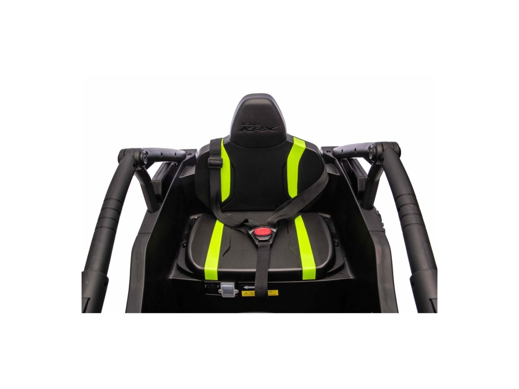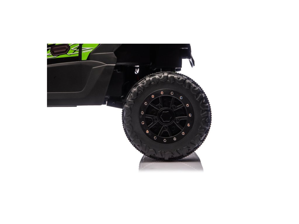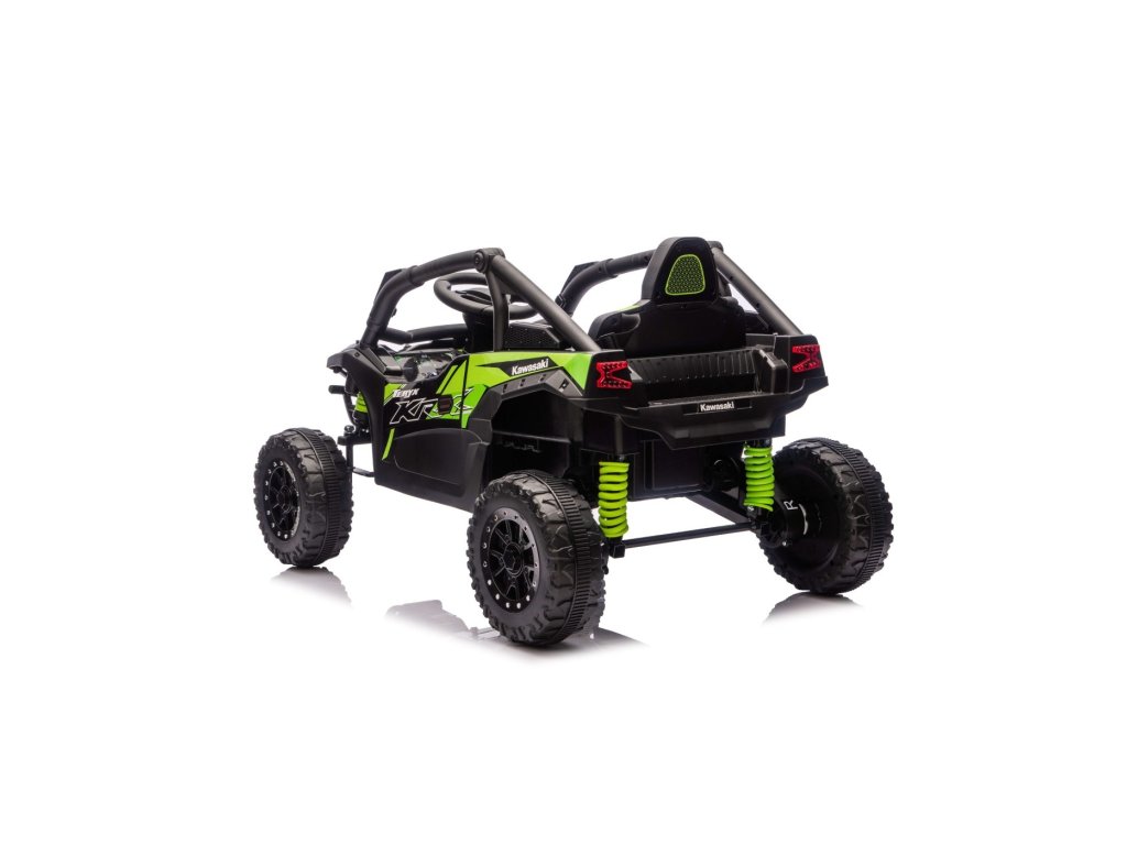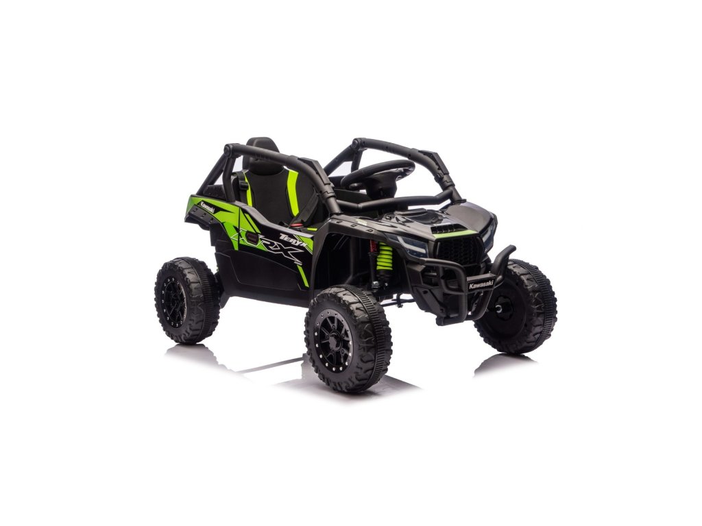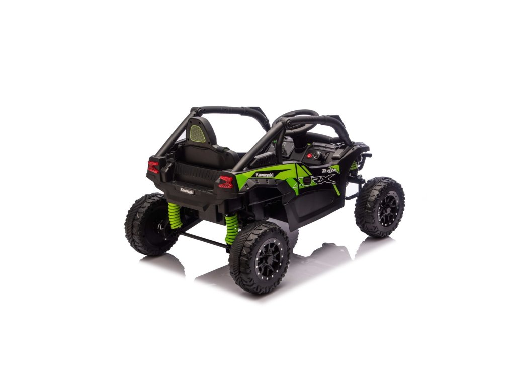 Stílusos Buggy Kawasaki TERYX KRX1000 gyerek kisautó ideális választás kis sofőrök számára, akik imádnak terepen és sima felületen is száguldozni. A nagy teljesítményű 24V-os rendszer négy motorral (2× 20W elöl, 2× 45W hátul) elegendő erőt biztosít még az egyenetlen terepen is. A kisautó puha EVA kerekekkel, kényelmes bőr üléssel és biztonsági övekkel van felszerelve. A STOP funkcióval ellátott távirányítónak köszönhetően a szülők mindig kézben tarthatják a járművet. A felszereltség tartalmaz LED lámpákat, audio panelt Bluetooth-szal, MP3, USB bemenettel és további funkciókkal.