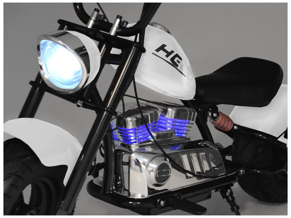 A motorkerékpárt a kormánymarkolaton található gombbal lehet beindítani. Indítás után valósághű motorhang hallható. Gombok találhatók a zene elindításához, a hangerő beállításához és a lejátszott dalok közötti váltáshoz is. A kormányon USB bemenet található, amelynek köszönhetően lejátszhatod kedvenc zenéidet. Zenelejátszás közben a motorkerékpár hengerei színes LED-es fényekkel villognak a zene ritmusában.