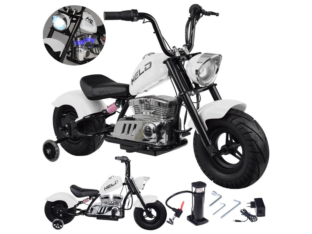 A Chopper 24V elektromos motorkerékpár nagyszerű választás a kis motorrajongók számára. A motorkerékpárt egy 24 V-os 14 Ah-s akkumulátor hajtja, és egy erős 24 V-os motorral rendelkezik. A motorkerékpár maximális terhelhetősége 80 kg . A gázkarban lévő sebességszabályozásnak köszönhetően a gyermek a saját képességeihez igazíthatja a vezetési élményt.