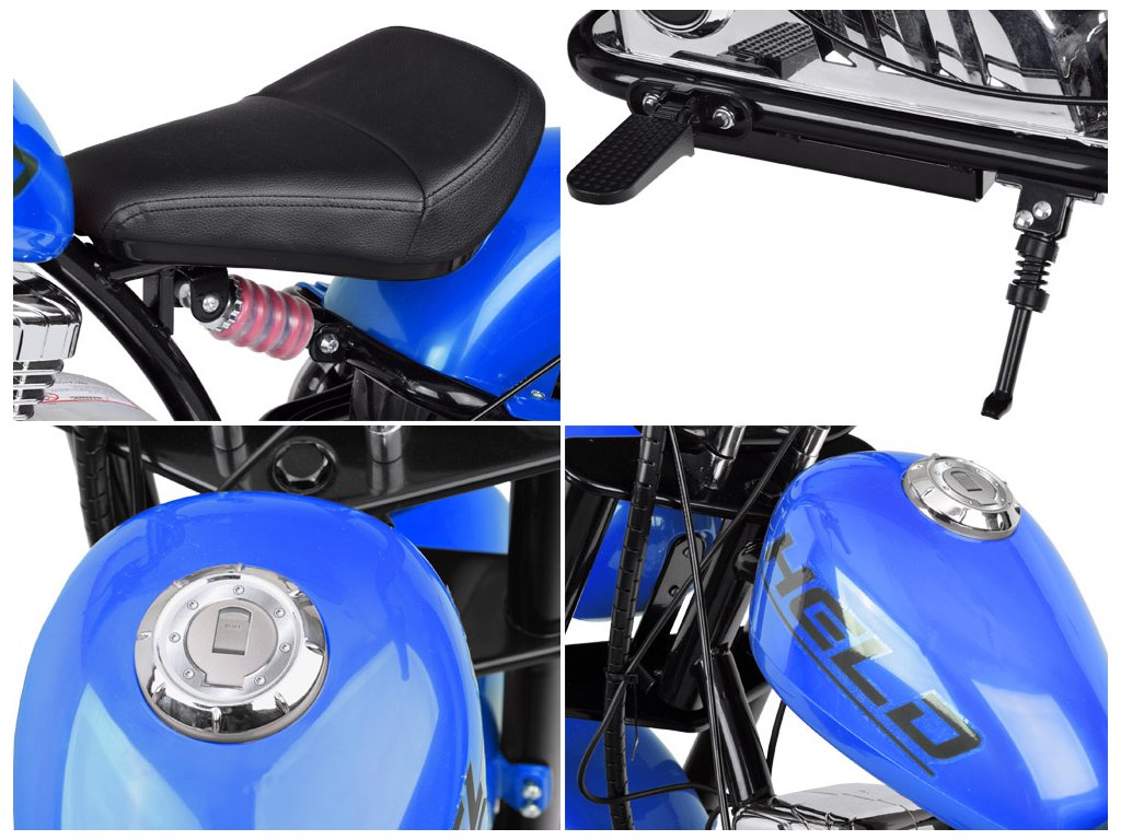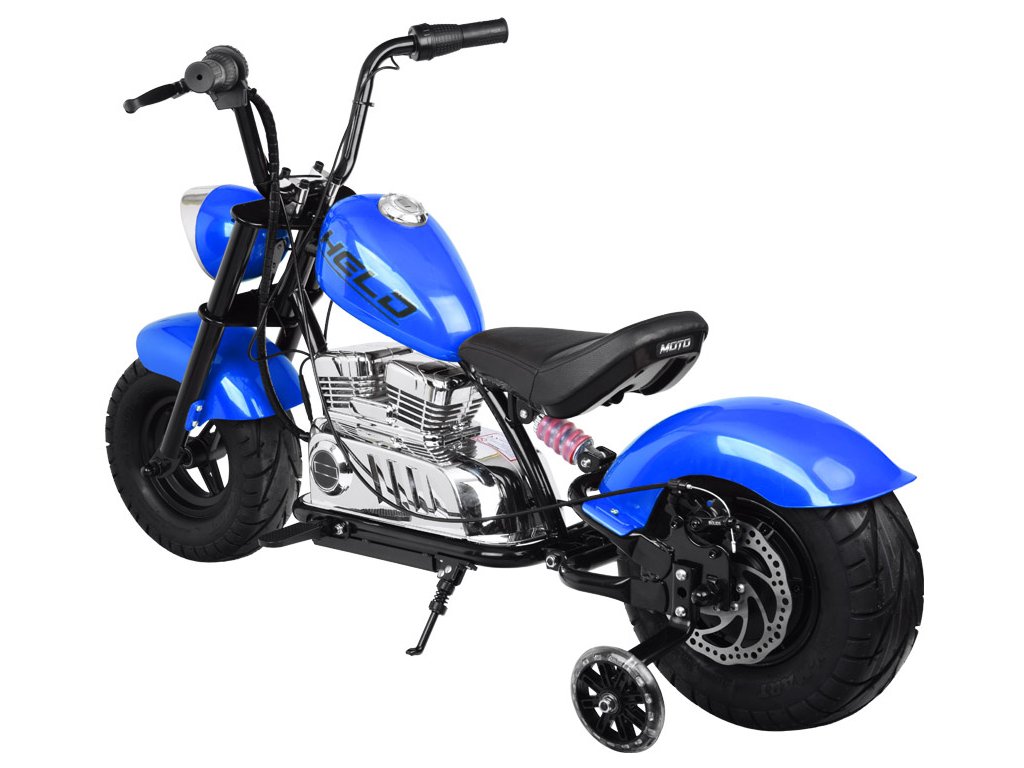 A Chopper 24V elektromos motorkerékpár nagyszerű választás a kis motorrajongók számára. A motorkerékpárt egy 24 V-os 14 Ah-s akkumulátor hajtja, és egy erős 24 V-os motorral rendelkezik. A motorkerékpár maximális terhelhetősége 80 kg . A gázkarban lévő sebességszabályozásnak köszönhetően a gyermek a saját képességeihez igazíthatja a vezetési élményt.