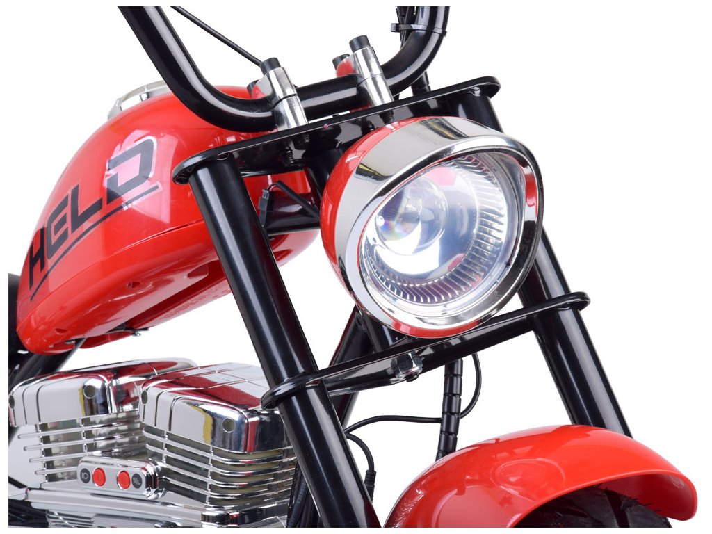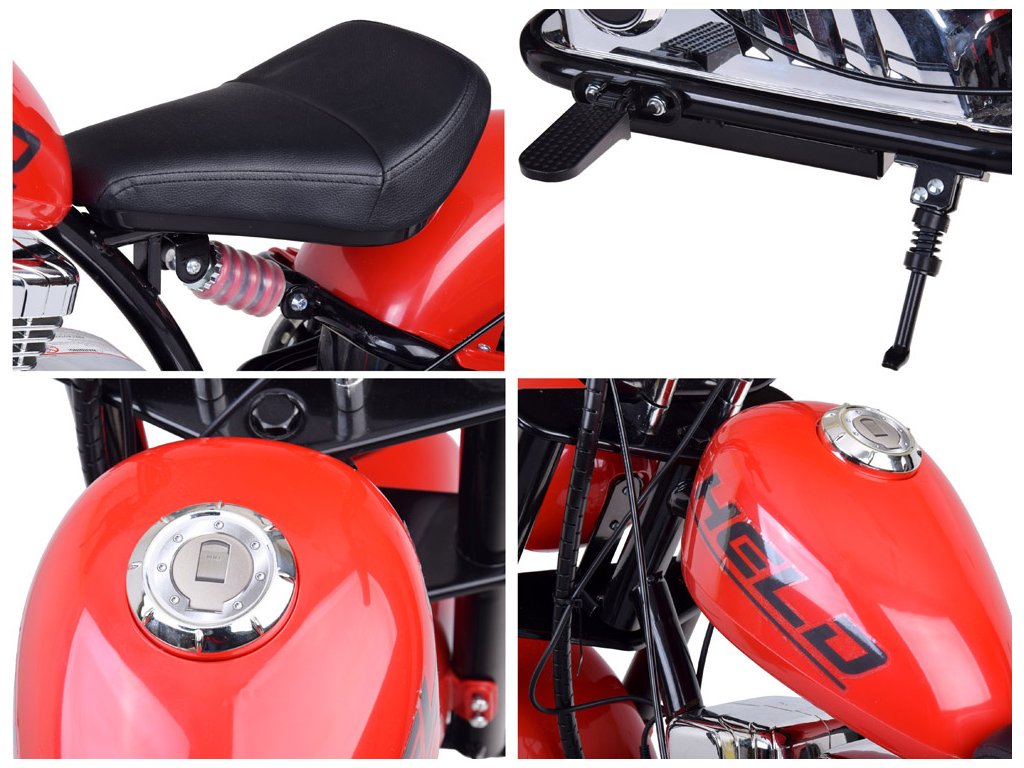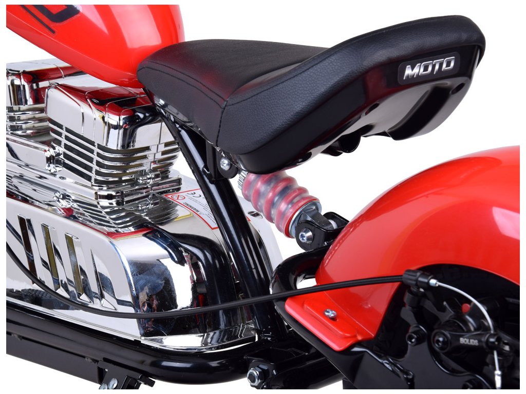 A Chopper 24V elektromos motorkerékpár nagyszerű választás a kis motorrajongók számára. A motorkerékpárt egy 24 V-os 14 Ah-s akkumulátor hajtja, és egy erős 24 V-os motorral rendelkezik. A motorkerékpár maximális terhelhetősége 80 kg . A gázkarban lévő sebességszabályozásnak köszönhetően a gyermek a saját képességeihez igazíthatja a vezetési élményt.