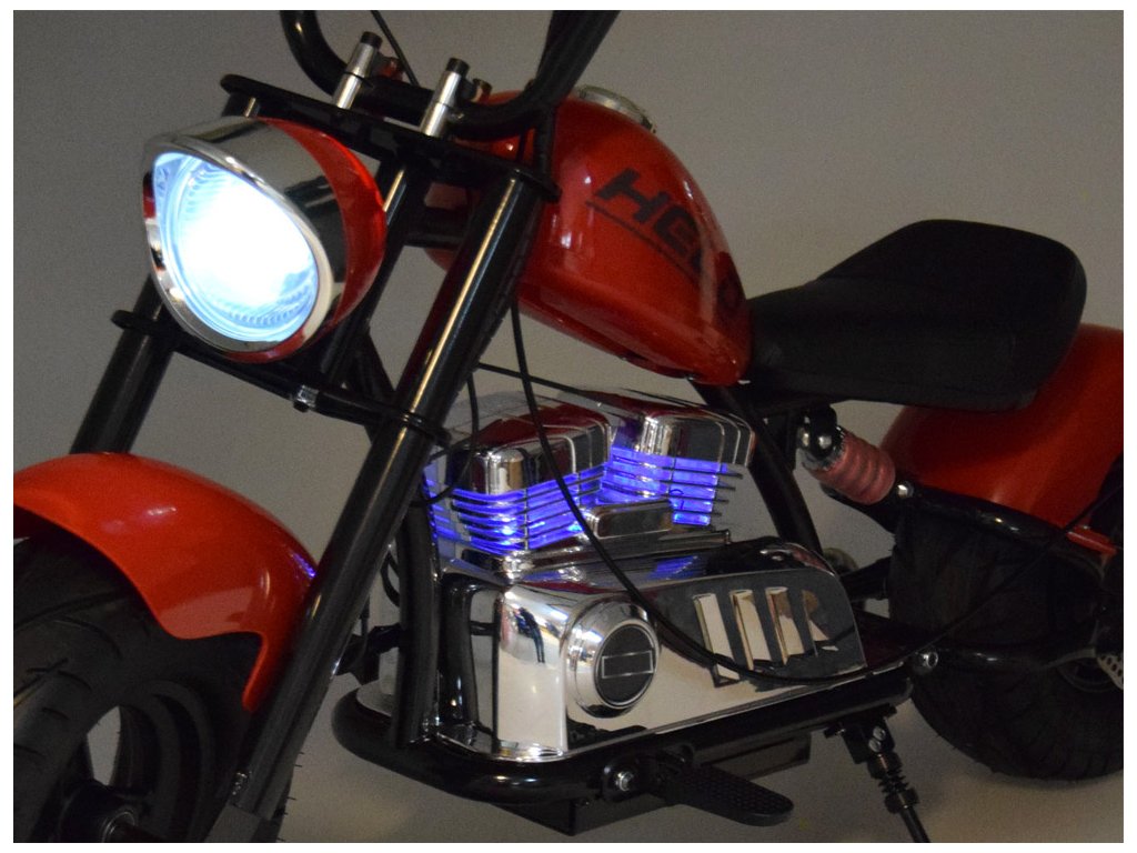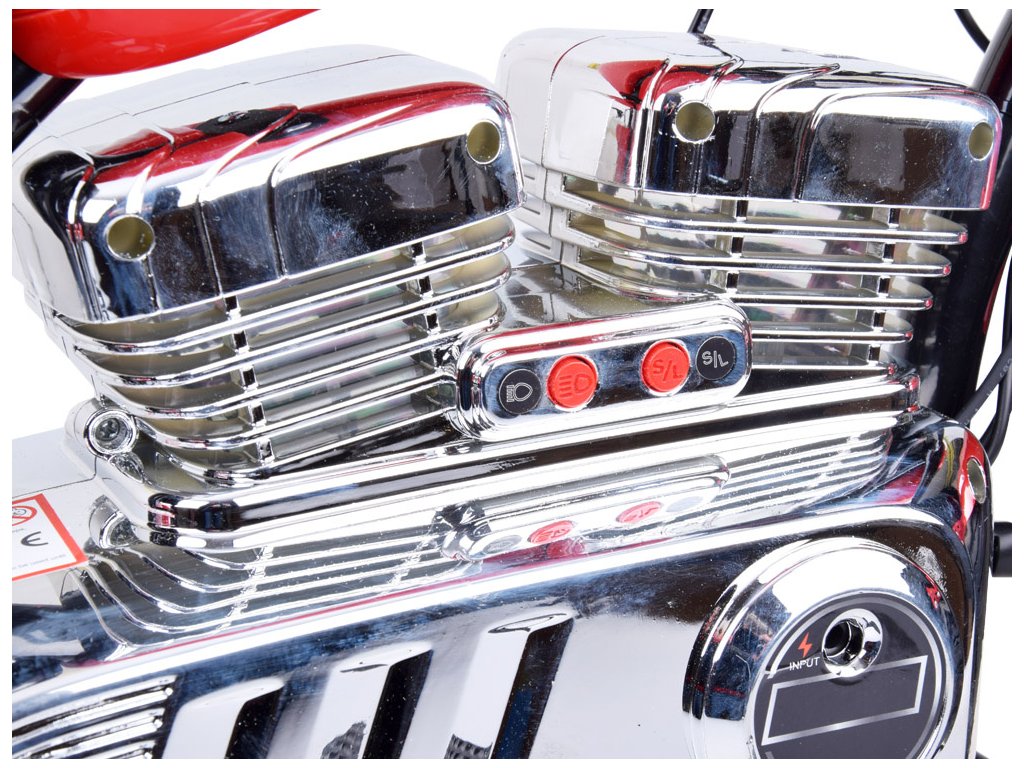 A motorkerékpárt a kormánymarkolaton található gombbal lehet beindítani. Indítás után valósághű motorhang hallható. Gombok találhatók a zene elindításához, a hangerő beállításához és a lejátszott dalok közötti váltáshoz is. A kormányon USB bemenet található, amelynek köszönhetően lejátszhatod kedvenc zenéidet. Zenelejátszás közben a motorkerékpár hengerei színes LED-es fényekkel villognak a zene ritmusában.