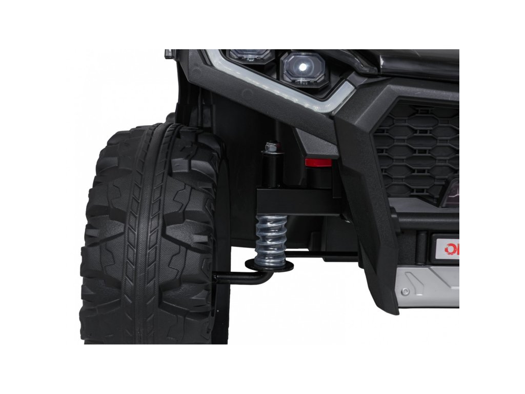 Quad Sport TX ATV gyerekeknek Ideális választás a kis kalandorok számára, akik izgalmas és biztonságos utazást szeretnének átélni. Négy erőteljes, 35 W-os motorjának és két 12 V-os, 7 Ah-s akkumulátorának köszönhetően a gyerekek hosszú órákon át élvezhetik a szórakozást. A 2,4 GHz-es távirányító lehetővé teszi a szülők számára, hogy teljes mértékben irányítsák a járművet, a biztonsági STOP gomb pedig azonnal leállítja a járművet.
