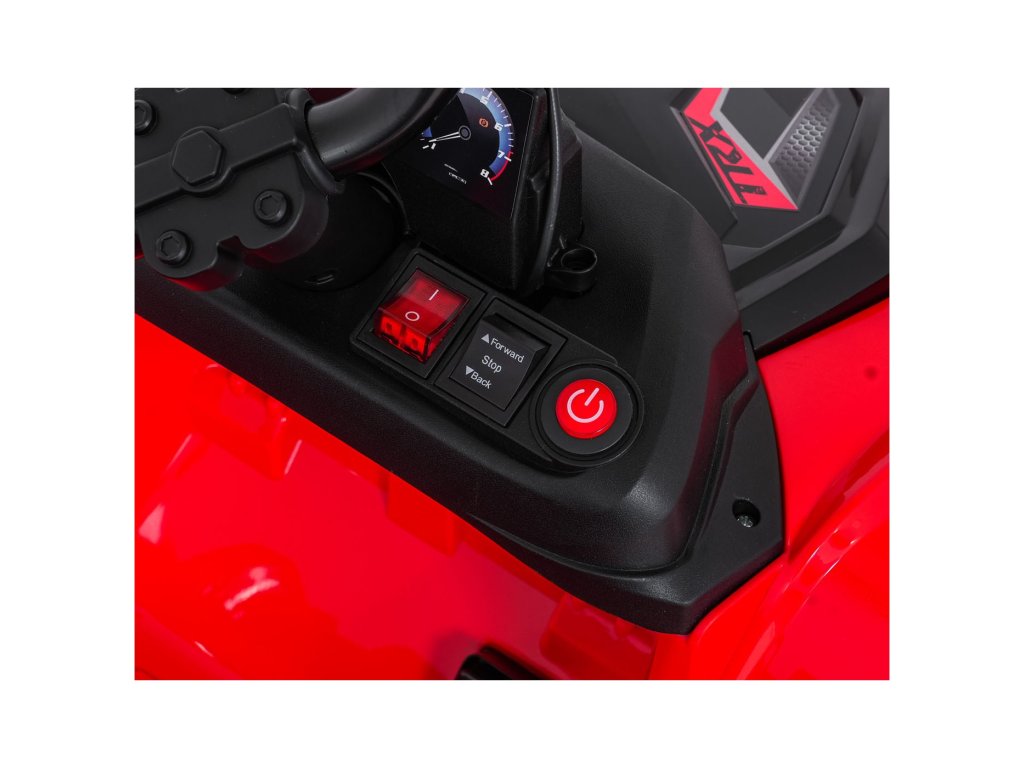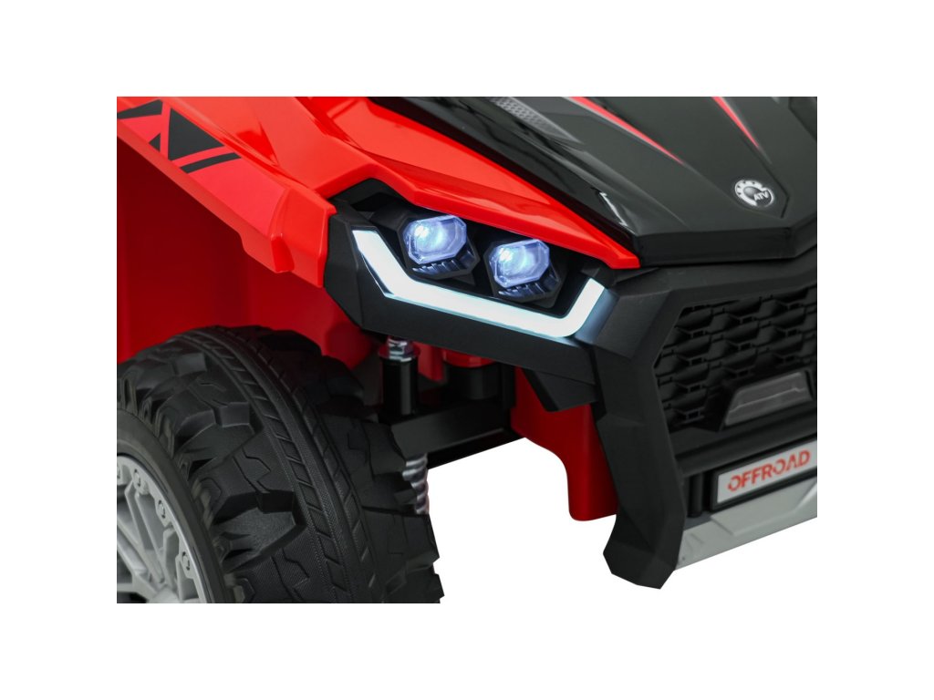 Quad Sport TX ATV gyerekeknek Ideális választás a kis kalandorok számára, akik izgalmas és biztonságos utazást szeretnének átélni. Négy erőteljes, 35 W-os motorjának és két 12 V-os, 7 Ah-s akkumulátorának köszönhetően a gyerekek hosszú órákon át élvezhetik a szórakozást. A 2,4 GHz-es távirányító lehetővé teszi a szülők számára, hogy teljes mértékben irányítsák a járművet, a biztonsági STOP gomb pedig azonnal leállítja a járművet.